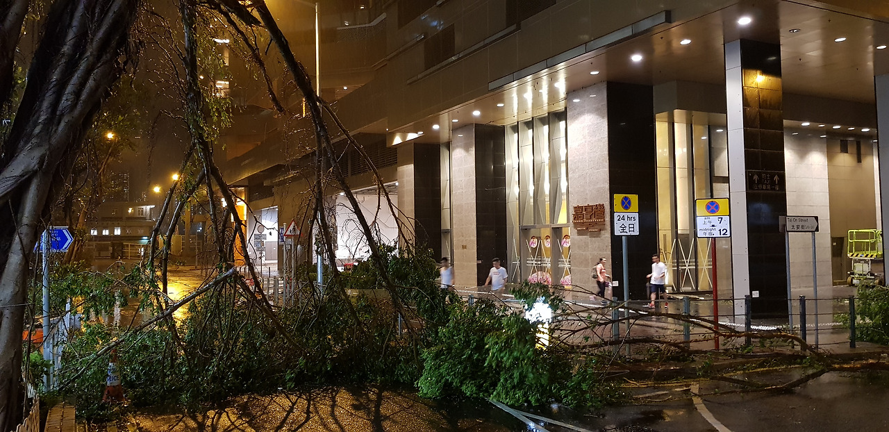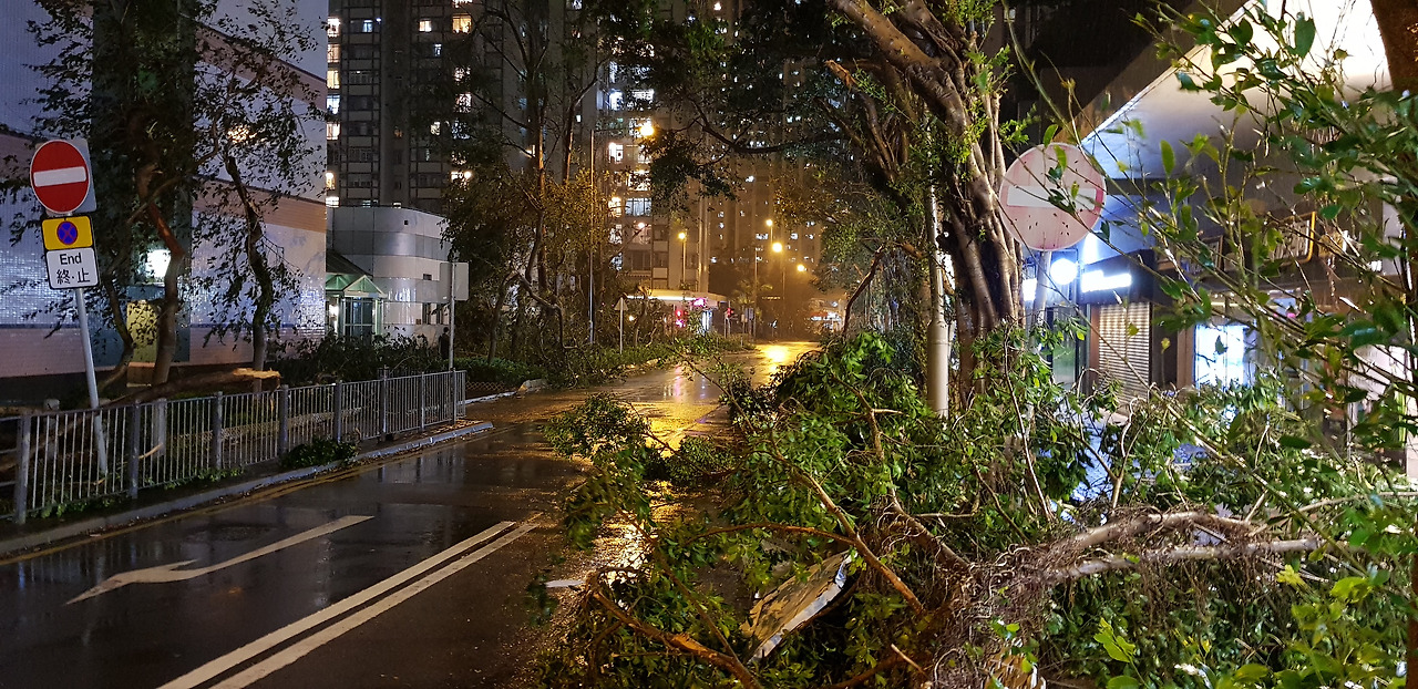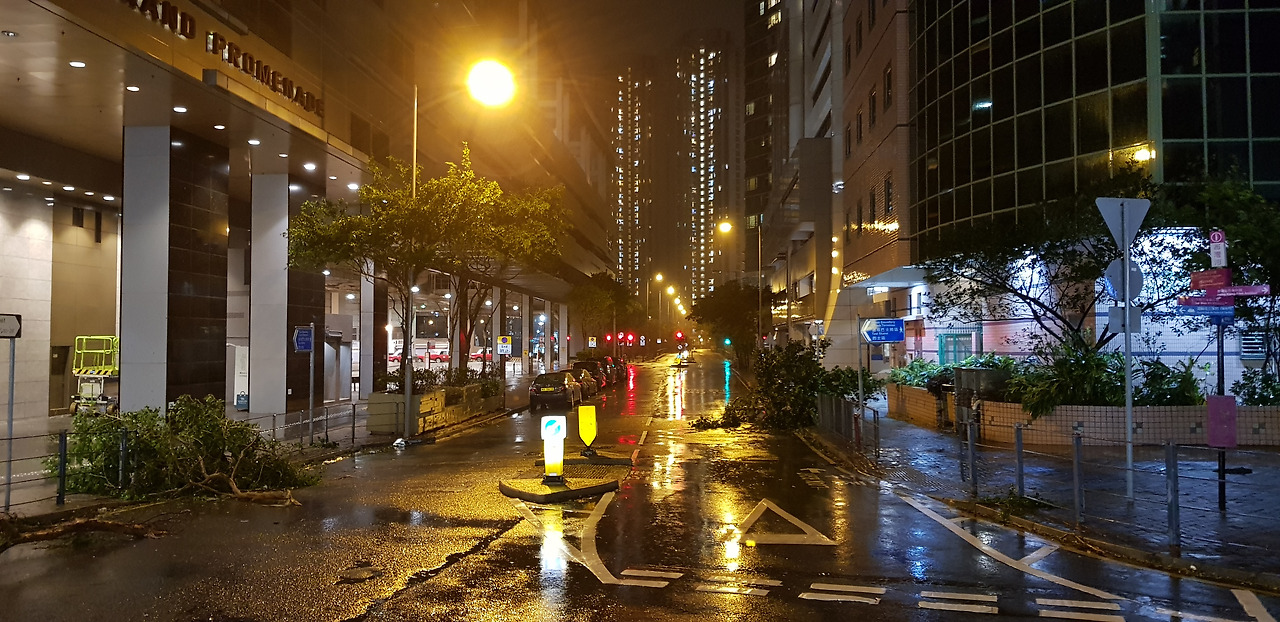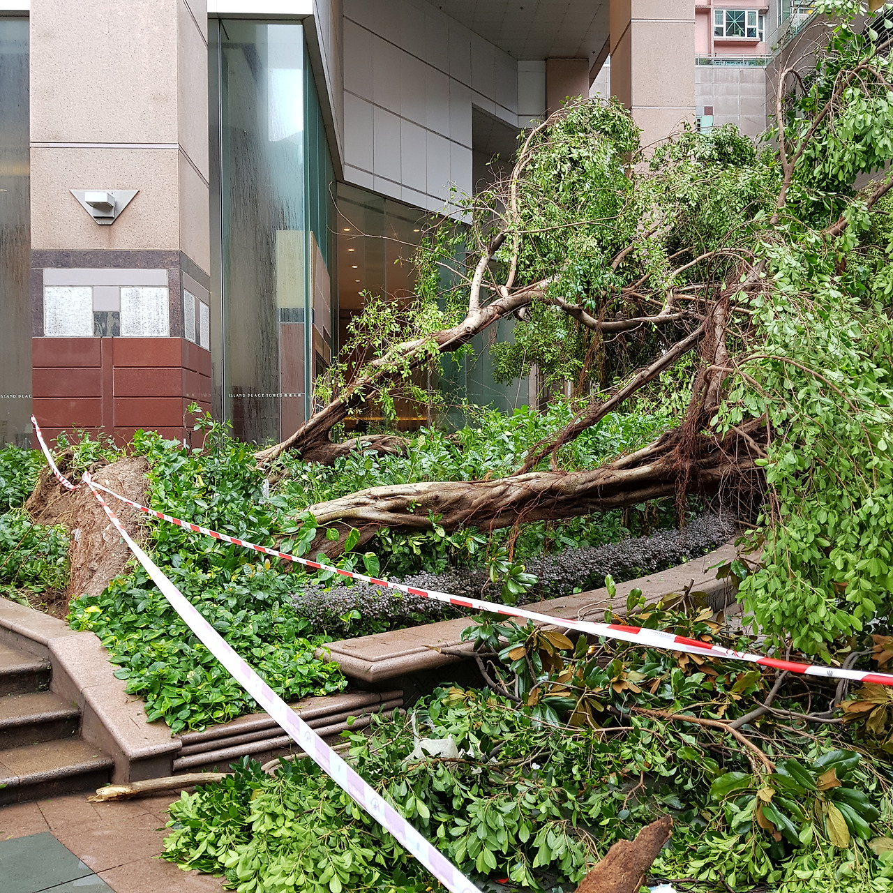 그라운드층(우리의 1층에 해당)으로 가서 건물 밖으로 나오니 여기가 과연 어젯밤 내가 들어왔던 길인가 싶었다. 특히 높게 솟아 있던 가로수들이 꺾여 큰길을 가로막아 버린 광경을 목도하면서 이번 태풍이 얼마나 파괴력이 컸는지 짐작할 수 있었다. 만일 나무가 쓰러질 때 근처를 거닐고 있었다면 목숨이 위태로울 봉변을 당할 수도 있었을 것이다. 오래전 어떤 기사에서 들었던 이야기가 있다. 과거 홍콩의 태풍으로 인해 간판이 떨어져 날아가 길을 가던 행인의 머리를 강타해 사람이 즉사했었다고 한다. 이번 태풍은 너무도 강력해 홍콩 시민 대부분은 미리 경고를 접하고 바깥출입을 자제해서 이런 피해가 적지 않았을까 기대해 보지만 각종 뉴스와 시민들의 제보를 보니 더 하면 더했지 피해가 결코 작지 않을 것으로 보였다.