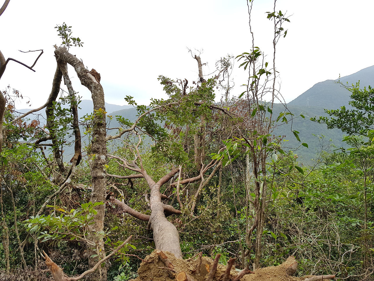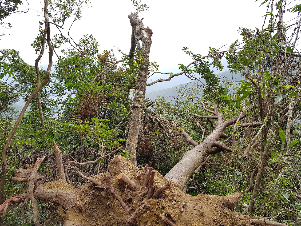 얼마 전 45층 집을 테마파크 놀이기구처럼 흔들어 대던 태풍의 흔적을 여기서 더 여실히 찾을 수 있었다. 나무들이 곳곳에서 뿌리를 완전히 드러낸 채 벌러덩 누워 있었고 큰 가지들이 마치 팔목을 꺾어놓은 것처럼 너덜대고 있었다.