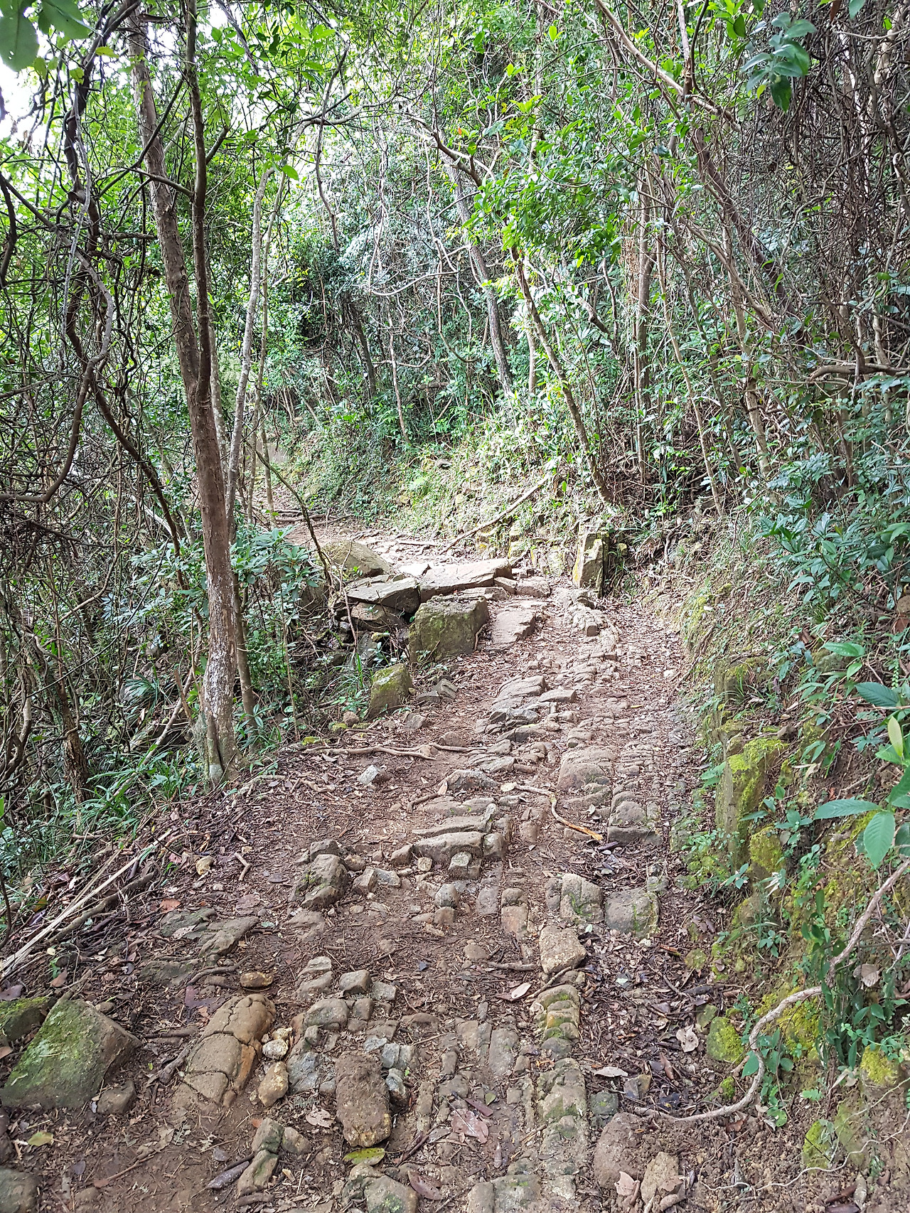 앞서 Flying Hoya 작가님도 사진으로 언급했지만, Dragon's Back이라는 이름은 왜 생겼을까 하고 생각해 보았다. 안내판을 유심히 살펴 보았다면 그 유래에 대해 알 수도 있었겠지만 이번엔 그냥 생각만 했다. 그러다 아주 자연스럽게 알게 되었다. 흙길이 군데군데 나오긴 했지만 대부분의 길은 툭툭 솟아나온 돌과 바위들 차지였다. 어떤 길은 흙이 거의 없고 돌과 바위로만 이루어져 딱딱한 등껍질을 연상시켰다. 그리고 쉽게 상상할 수 있듯이 산정상으로 가는 길은 구불구불 구비구비 돌아 이어져 있었다.