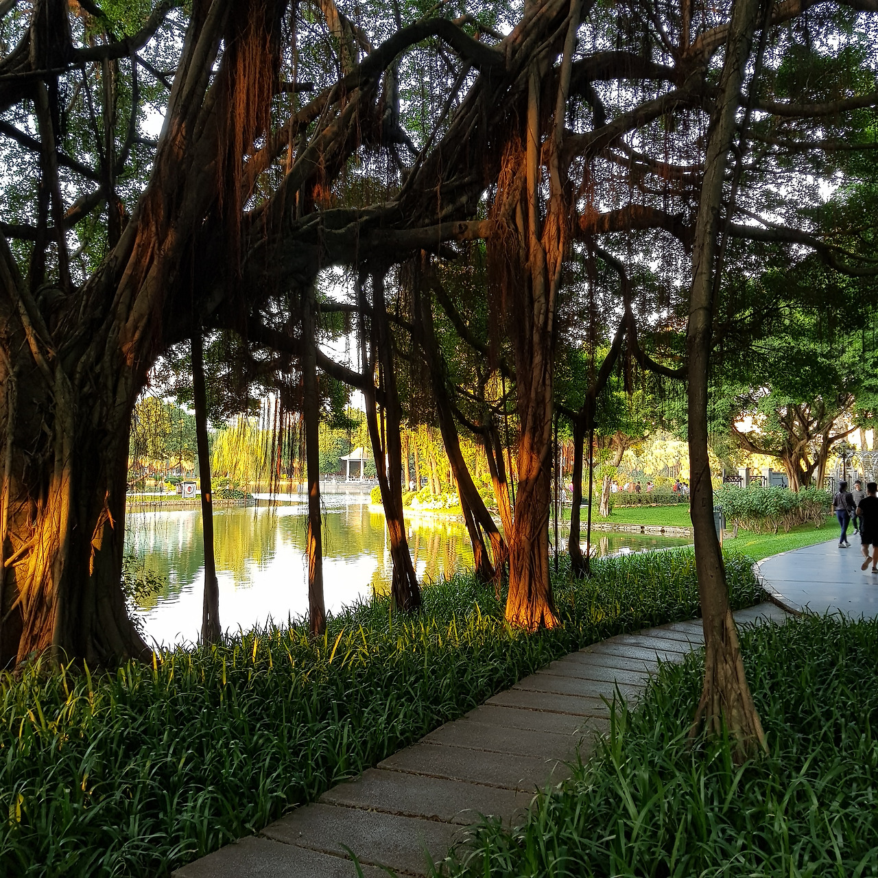 호수를 따라 무심히 걸었다. ' 무더웠던 광저우에도 가을의 선선함이 찾아오긴 하는구나. 후쿠오카의 오호리 공원 호수는 커다란 호수 주위를 마치 큰 트랙처럼 만들어 놓았었는데 여기 류화후 공원은 여기저기 다닐 수 있는 작은 오솔길이 많구나.'
