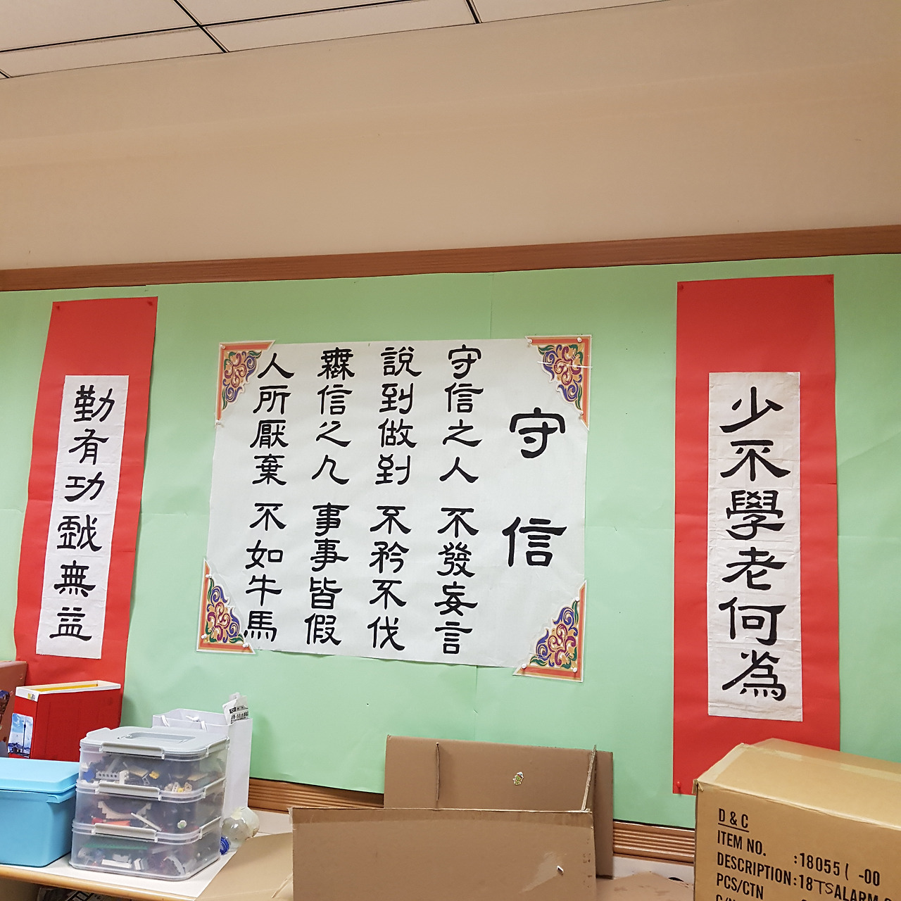 우리나라 초등학교 교실에 마지막으로 들어간 기억이 가물가물한 시점에서 낯선 마카오의 한 초등학교 교실을 둘러본다. 급훈도 있고, 아이들이 해온 숙제도 전시되어 있다. 한자와 영어가 섞여 있는 교실 분위기가 사뭇 이색적이다.