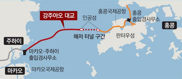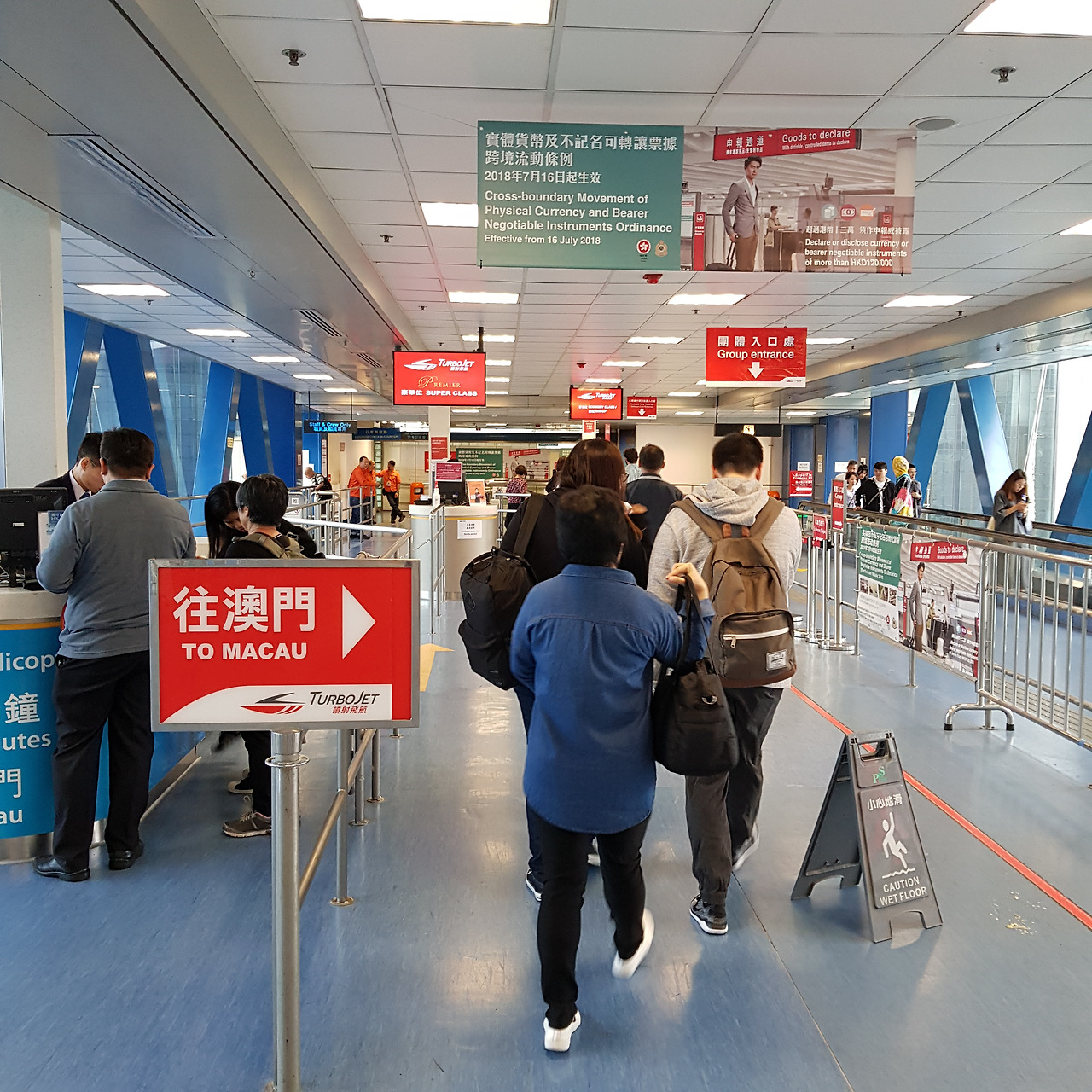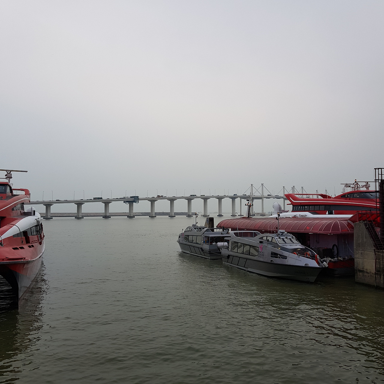 마카오로 가는 새로운 길, 강주아오대교(钢珠奥大桥)가 개통되었지만 이번엔 그냥 페리로 간다. 홍콩 동료들은 주말에 이 새로운 길을 이용하다가는 언제 마카오에 닿을지 장담하기 어려울 거라 말했다. 홍콩 터미널에서 마카오 터미널까지 총 42km이고 해저터널만 6,225m에 달한다. 아직은 초기라 바다 위로 또 아래로 펼쳐진 이 신기한 다리를 경험해 보고픈 사람들이 무척 많다.