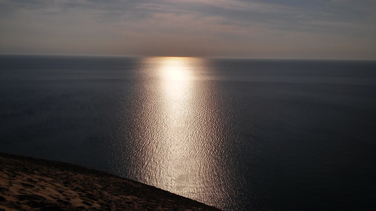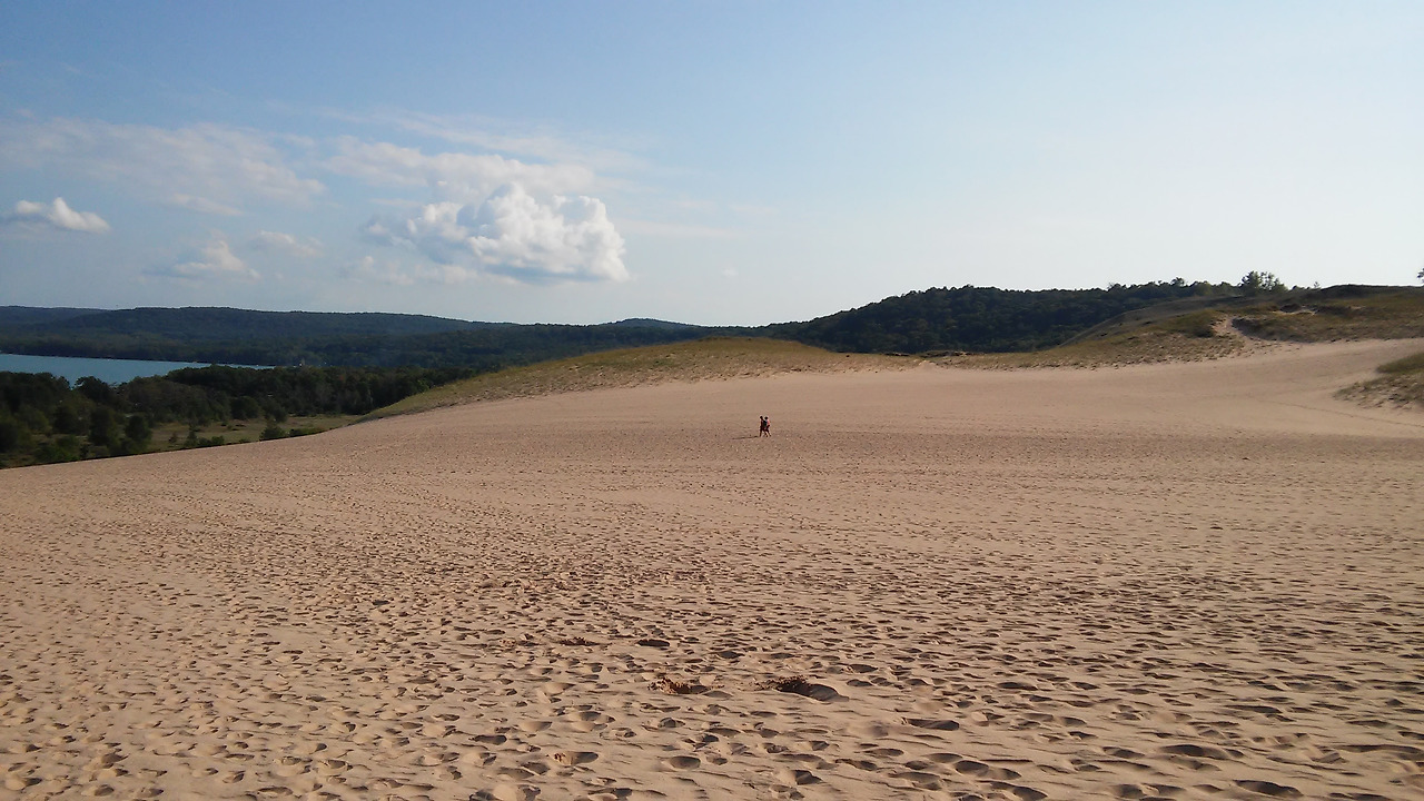 아메리카의 오대호는 그 광활한 크기가 바다에 비견할 만하다. 미국 본토를 처음 방문하는 우리들은 매킨나 아일랜드에서부터 이 엄청난 크기와 한 번도 본 적 없는 기묘한 자연경관에 매료당했다. Sleeping Bear Dune을 내려와 차를 타고 가다가 Lake of Michigan이라는 팻말이 세워진 곳에 내렸다.