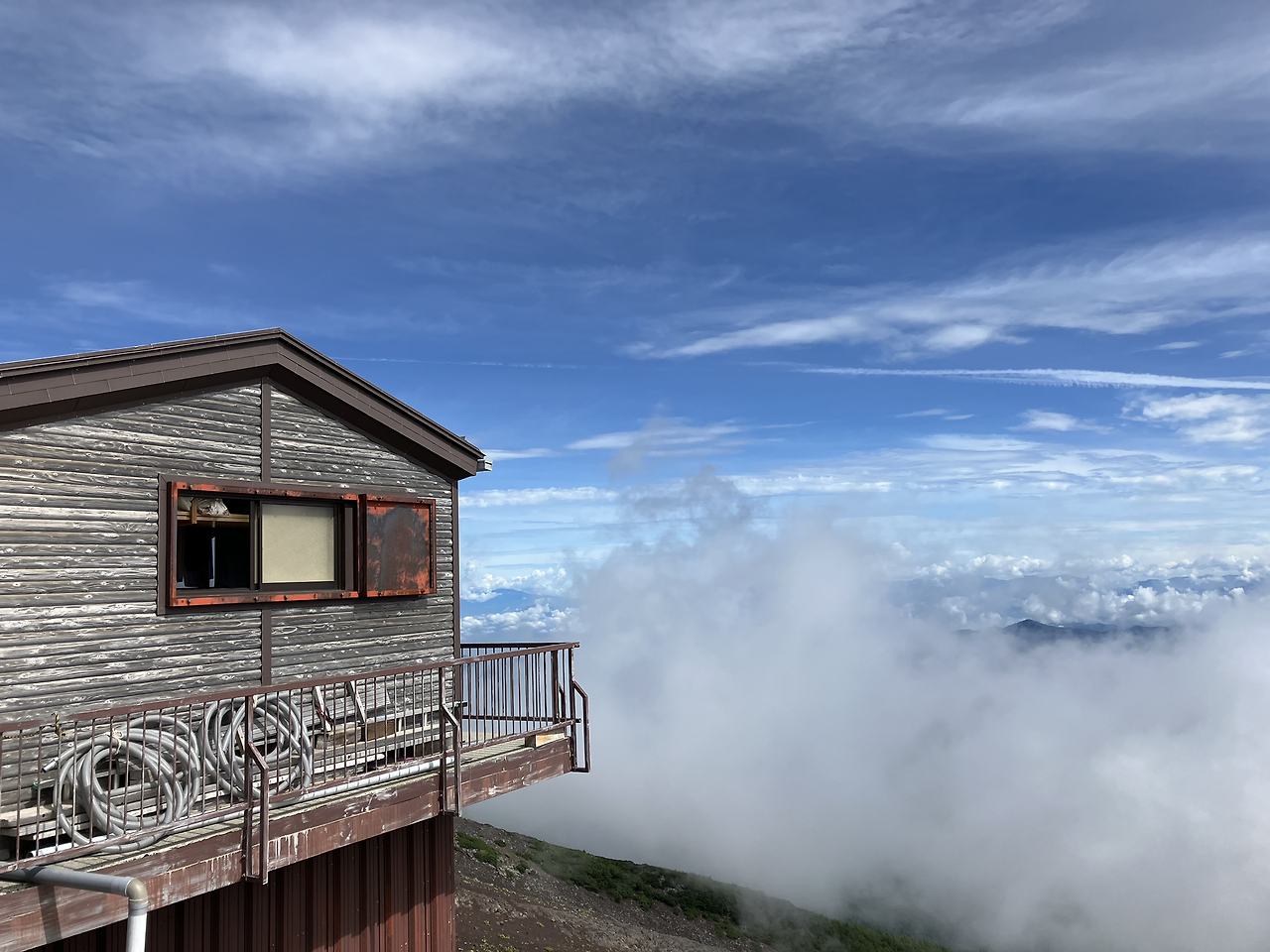 어느덧 하늘엔 구름이 많아졌고 이따금 천둥도 치고 있었다. 즉, 머지않아 비가 올 수 있음을 알리고 있었다. 그래도 밥은 먹어야지. 달랑 하나 남은 오니기리만으로는 배가 찰 것 같지 않아, 컵라면을 사려 매점에 가니 컵라면 1000엔, 끓인 라면 1200엔에 팔고 있었다. 상술인지 모르겠지만, 그렇다면 당연히 끓인 라면을 먹을 수밖에. 주문 후 5분 만에 나온 라면은 인스턴트 봉지면에 차슈와 미역 등을 올린 수준이었지만, 정상에 오른 성취감에 그리고 손끝이 살짝 시린 기온에 어울리는 따뜻하고 자극적이지 않은 맛이었다. 잘 먹었습니다!