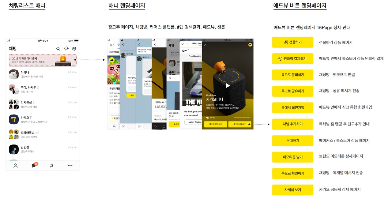 추가로 카카오 채널 혹은 광고주 페이지로 랜딩하여 전환을 극대화 할 수 있다는 점에서도 장점을 꼽을 수 있는데요. 이 외에도 카카오모먼트 플랫폼에서 제공하는 타겟팅특정 카카오 서비스 사용자, 카카오 광고 반응 타겟팅), 전화번호 기반 채팅 앱으로 오디언스 허수가 거의 없다는 장점도 있습니다.