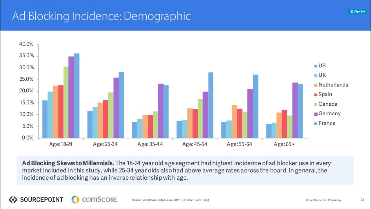 미래 기술에 대한 좋은 지표인 젊은 사용자는 특히 광고 차단 소프트웨어를 많이 사용한다.
