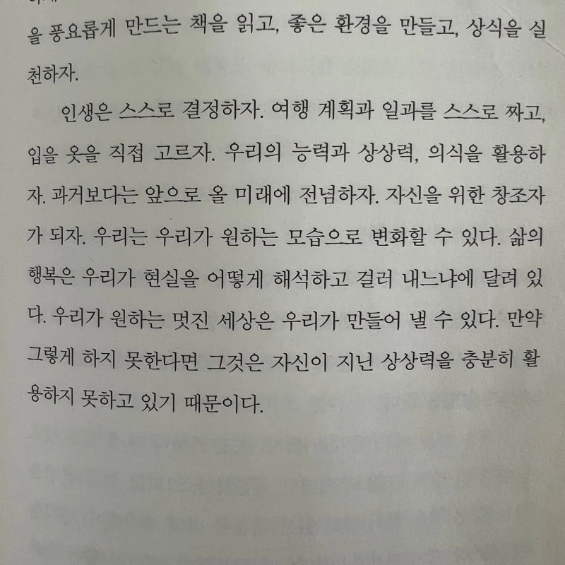 글로 정리하다 보니 솔직한 내 마음과 마주할 수 있었고, 분류하여 비워낼 수 있었다. 의식해서라도 나 자신과 자주 대화하자. 그리고 내가 원하는 삶과 모습, 마음 상태, 아이가 행복하고 바르게 성장한 모습, 행복하게 노후를 보낼 우리 부부의 모습을 상상하고 기대하며