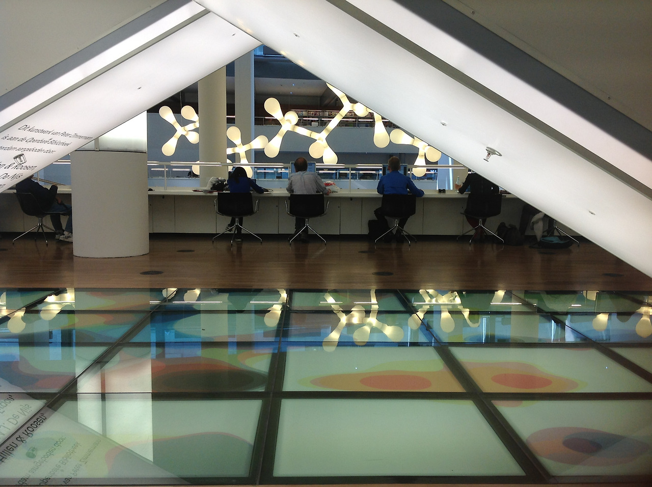 2층에는 멀티미디어 공간. 레코드판을 소재로 의자를 만든 것이 신선하다. 수많은 LP와 CD들이 빼곡하게 들어차 있으니 듣지 않아도 보지 않아도 절로 만족스럽다. 조용히 혼자 음악을 듣고 싶으면 약간 폐쇄된 공간에서 혼자만의 시간을 가지면 된다. 그러다 책을 보고 싶으면 안락한 의자로 가서 책을 읽어도 된다. 이도 저도 싫다면 커다란 유리창을 통해 보이는 암스테르담 시내를 유유자적하게 바라보면 된다.