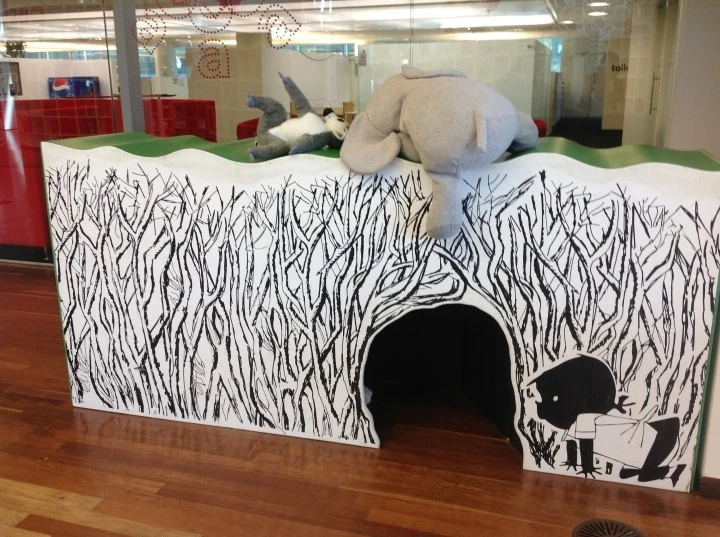 아이들의 키만큼 큰 인형들이 곳곳에서 웃고 있고, 푹신해 보이는 어여쁜 의자와 앙증맞은 책상들이 널브러져 있다. 미니 터널도 있고 아이들이 좋아할 만한 텐트도 있어서 책을 가지고 마음껏 놀 수 있는 곳이다. 한쪽에 유리벽으로 만들어진 공간에서는 책 배움터 같은 열린 강의나 워크숍이 이루어진다. 도서관에서 할 수 있는 모든 것을 다 경험할 수 있는 꿈의 공간이다.