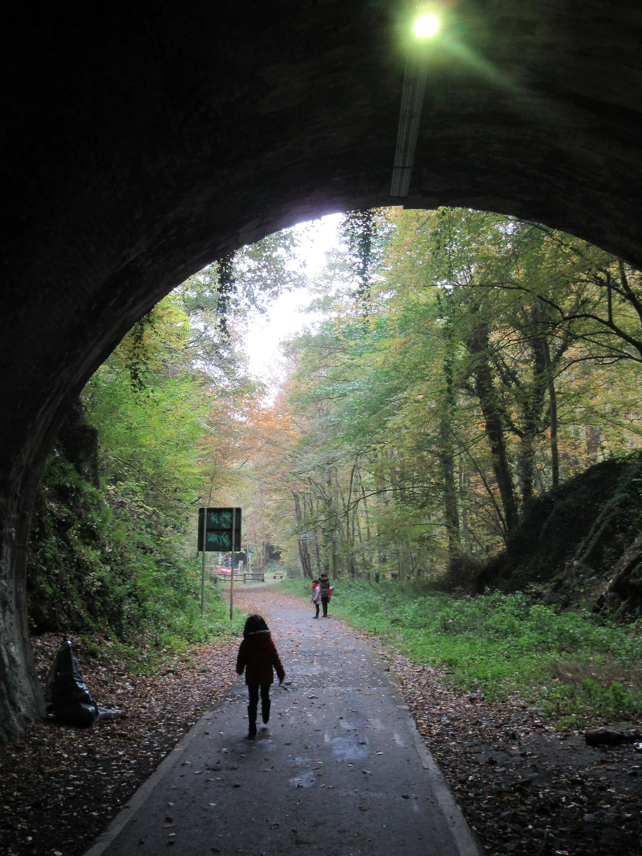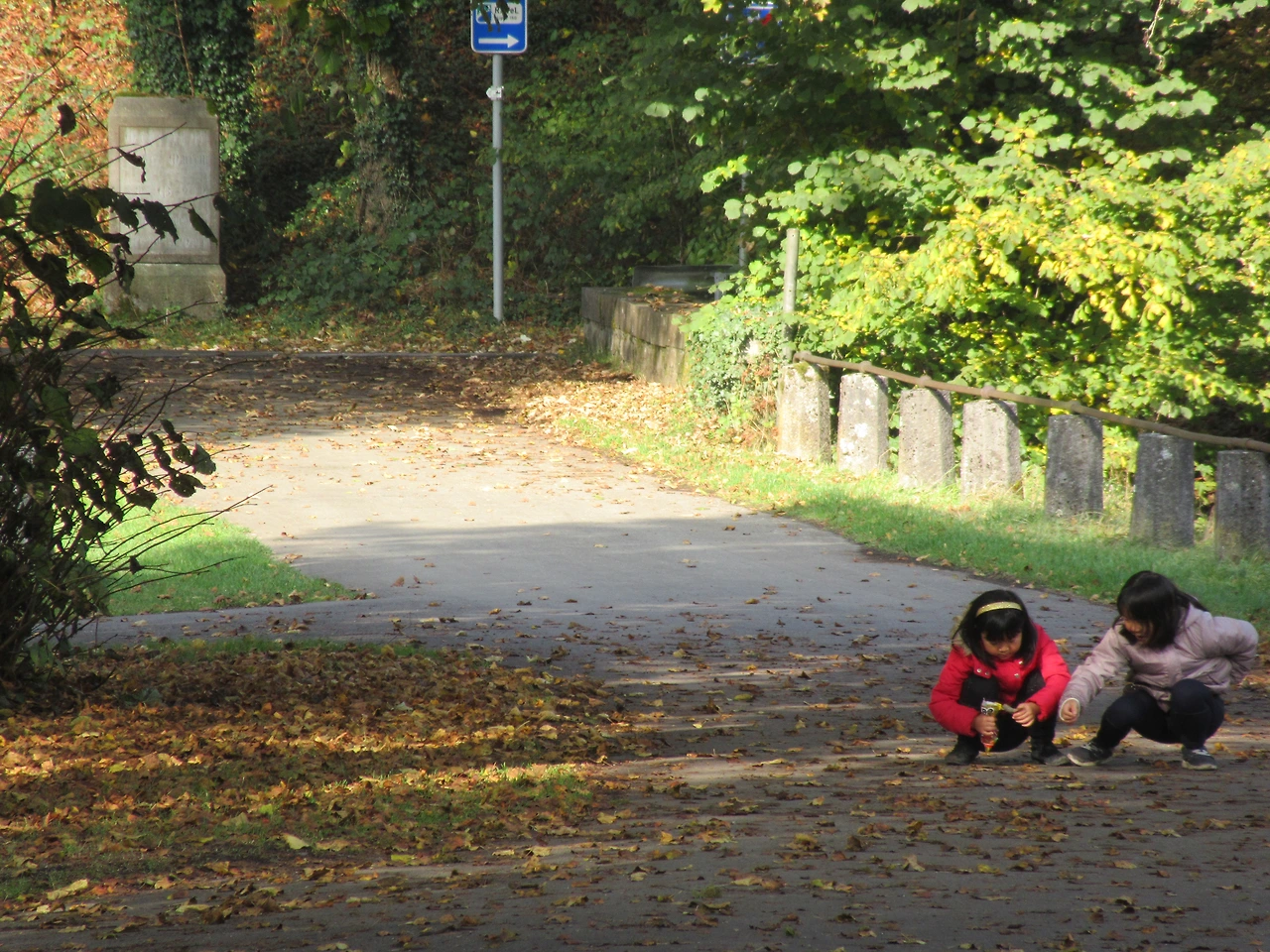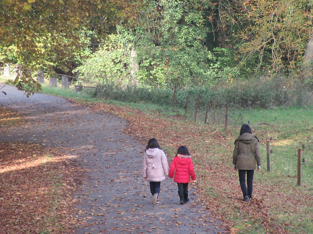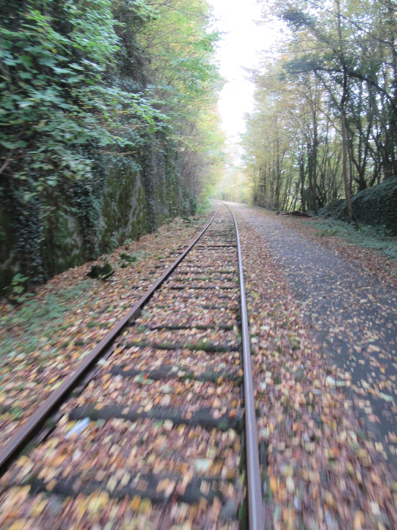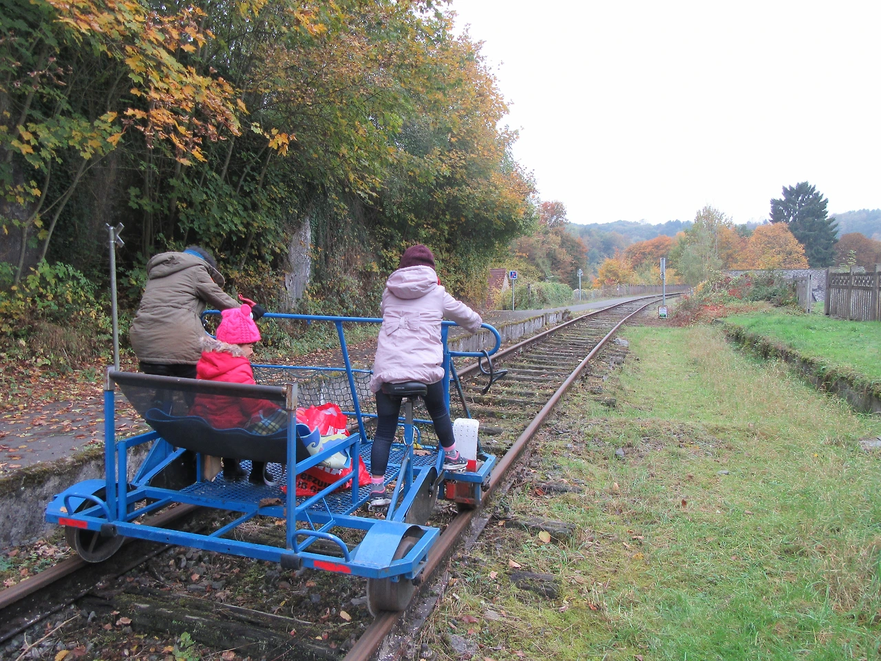 낙엽이 깔린 철로 위를 달려가는 기쁨이 아이들에게 충분한 보상이 되었다