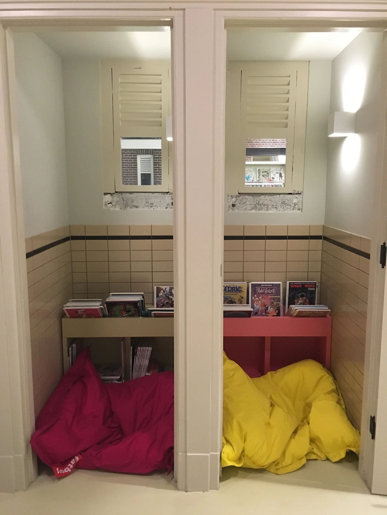 이 아이들은 직관적으로 그 공간이 무엇이었는지 알아차린다. 그리고 커다란 쿠션 위에 철퍼덕 앉아서 뒹굴거리기도 하고 옆 칸으로 옮겨서 태블릿으로 게임을 하기도 한다. 그러다가 그 옆 칸에 가서 퍼즐을 맞추기도 한다.
