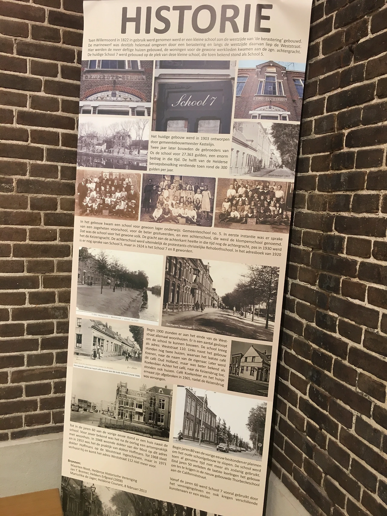 1905년 이 곳 덴 헬더르의 베스트스트라트(Westraat)에 한 초등학교가 세워졌다. 이후 초등학교는 여러 모양새를 갖추게 된다. 중간에 르호봇이라는 기독교학교로 바뀌었다가 이후에 해상 학교로도 변신했다. 1956년 학교 7에 다니던 마지막 학생들은 쏘르베크(Thorbeck) 학교로 옮겨 수업을 받게 된다. 1960년대에 이르러서는 학교는 서서히 조정 절차를 밟게 되고 문을 닫는 상황까지 이르게 된다. 1970년대 말에 시청에서 학교 건물을 철거하려고 하기까지 이 학교 건물은 클럽으로도 사용되었고 예술가들의 스튜디오로도 쓰였다. 시의회에서 학교 건물을 폐교하려고 하자 지역주민들은 반발했다. 60000여 명의 조합원들이 건물을 보수하려고 노력했다. 이들은 이 건물을 영구적으로 영화관으로 사용하고 싶어 했다. 학교는 영화관으로도 사용된다. 결국 덴 헬더르 시(Den Helder 市)에서 2012년 학교 건물을 매입한다. 그리고 도서관으로 전환하는 대대적인 사업을 펼친다.