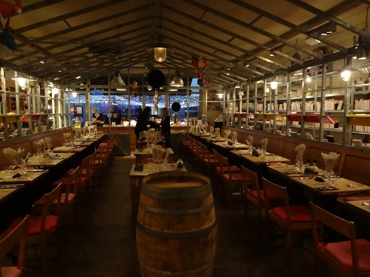 이런 곳에서 먹고 마시며 책을 읽는다는 것 자체가 기막힌 휴가 아닌가? 몸과 마음의 양식을 배 불리는 가장 현명한 장소가 아니던가? 사람들의 보편적인 욕구를 창의적인 발상으로 구현해 낸 곳이다. 흔히 볼 수 있는 대형서점 한 구석 또는 한 층에 마련된 카페테리아가 부설되어 있는 것이 아니다. 아예 처음부터 먹는 것과 읽는 것을 동시에 이룰 수 있는 공간으로 재탄생시킨 것이다.