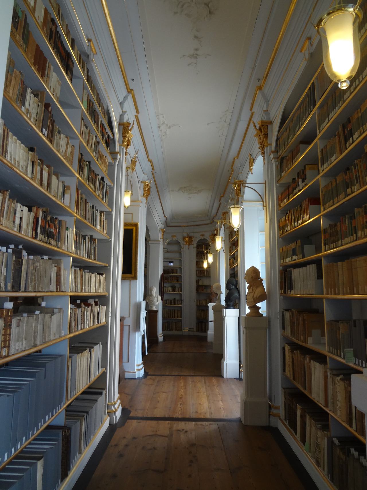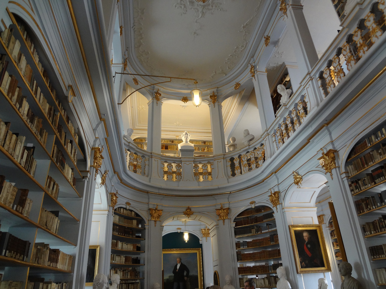 로코코 양식의 우아하고 아름다운 도서관, 화재로 인하여 귀중한 책과 보물이 소실되어 바이마르 시민들이 인간띠가 되어 귀중한 고서들을 살려내고자 했던 쓰라린 과거를 안고 있는 도서관. 루터 번역 성서 초판본(1534년), 파우스트 완판본(1854), 괴테와 니체, 리스트와 관련된 장서와 모차르트, 하이든의 악보, 셰익스피어 컬렉션 등 그 밖의 희귀본을 소장하고 있는 보석 같은 도서관, 바이마르 헌법으로 유명한 그곳은 한 마디로 독일 문화의 자존심을 곧추 세워주는 도시이기에 이 곳의 도서관은 역사이자 보물창고인 것이다.