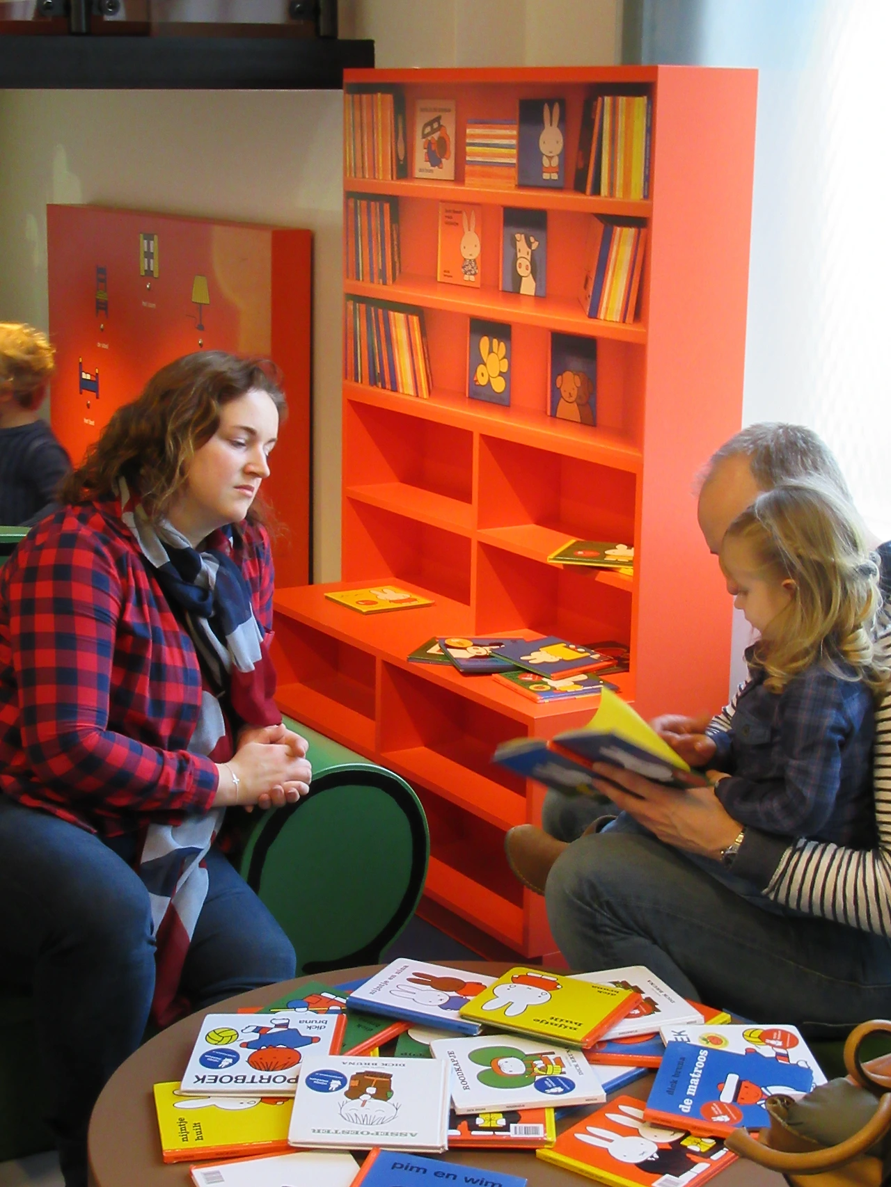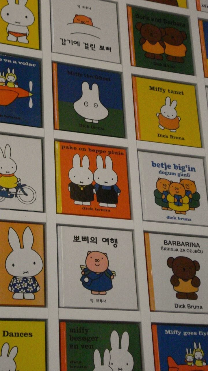 박물관 입구에 마련된 사물함에 다양한 미피 캐릭터를 그려놓은 것을 보는 순간부터 이 곳을 방문한 부모와 아이들에게 설렘을 안겨준다. 옆에 마련된 놀이터에서는 소꿉놀이, 정원놀이, 책 읽기 등의 활동을 할 수 있는 공간이 있다. 이 곳에서 아이들이 얼마나 오랫동안 집중해서 노는지 모른다. 부모들은 함께 책을 읽어주거나 노는 것을 지켜보거나 사진 찍어주기에 바쁘다. 이전 박물관 입구에 있었던 황금 미피 대신에 파란 옷을 입은 미피가 방문객들을 맞이한다. 그 안에 들어서면 딕 브루너 할아버지의 모습과 천장에 매달린 미피 그림책. 세계 각국의 언어로 발간된 미피 그림책들이 머리 위에서 춤을 추면 아이들도 덩달아 신난다. 우리 아이들도 한글로 된 미피 그림책을 찾느라 신나해했다.
