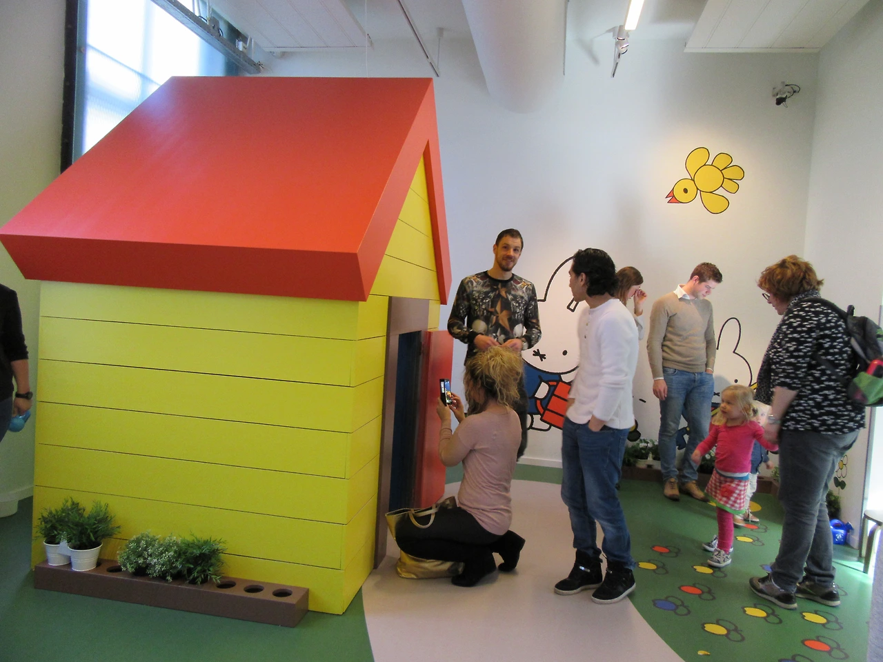 사오 년 전쯤에 처음 갔을 때와 다시 재개관하여 방문한 미피 박물관에서의 느낌은 아주 큰 차이가 있다. 명칭도 딕 브루너 하위스였기에 이전 박물관에서는 작가인 딕 브루너에 대한 설명과 전시물이 있고 그의 그림책들이 다양하게 진열되어 있었다. 그리고 그림책의 내용을 이해하기 좋도록 입체적인 무대를 마련하여 꾸며 놓은 작은 박물관이었다. 미피가 살고 있는 집을 앙증맞게 만들어 놓았고 그림을 그리거나 미피 인형을 가지고 놀 수 있는 작은 공간들이 있었다. 또한 벽면에는 모니터를 통해 미피 만화영화가 상영되고 군데군데 미피 그림책을 소개하고 있던 아기자기한 박물관이었다. 그래도 그때는 그 동화책 같은 아담하고 앙증맞은 곳이 얼마나 사랑스러웠는지 모른다. 세상에 이런 곳이 있구나 싶을 정도로. 한국에서 미피 뮤지컬과 미피 체험관에서 경험했던 것들을 모아 놓은듯한 전시장이었었다. 그런데 몇 년 후 새로 탄생한 미피 박물관은 전혀 느낌이 달랐다. 미피를 총체적으로 이해하고 체험하는 거대한 실내놀이터로 변신하여 영유아들의 최적의 교육공간으로 성장하여 아이들에게 더욱 깊숙이 다가선 것이다.
