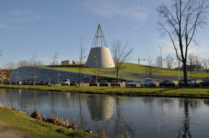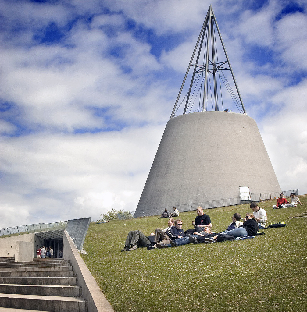 대학생뿐 아니라 어린이가 꿈꾸는 장난기 가득한 상상이 그래도 이루어지는 재밌는 도서관이란다. 실제 겨울에 도서관 위에 눈이 쌓이면 거기서 썰매 타고 노는 어린이 같은 어른들이 있다고도 한다. 한편으로는 위험해서 울타리를 친다는 말도 있다. 밤이 되면 원뿔 모양 건물에서 조명이 흘러나오면 주변은 등대가 있는 언덕처럼 보이겠지.