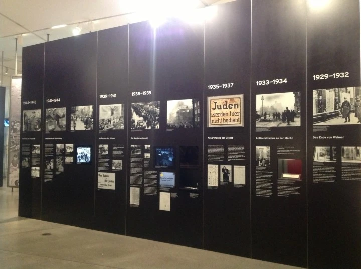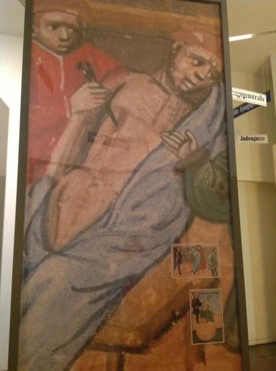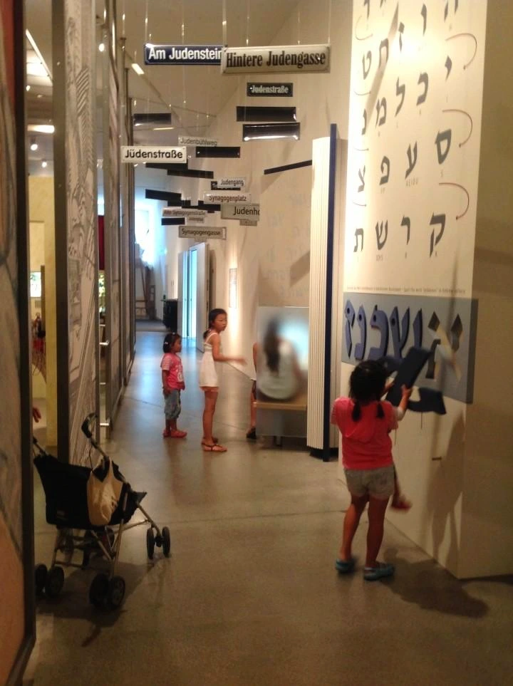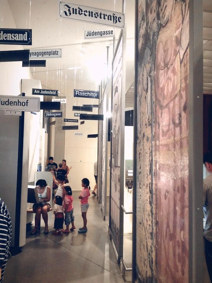 저 이정표는 독일 내에 실제 있는 유대 관련 지명과 도로이름들이다. 즉 역사 속의 유대인은 동떨어진 존재가 아니라 중세 때부터 함께 살아왔다는 의미를 던져준다.