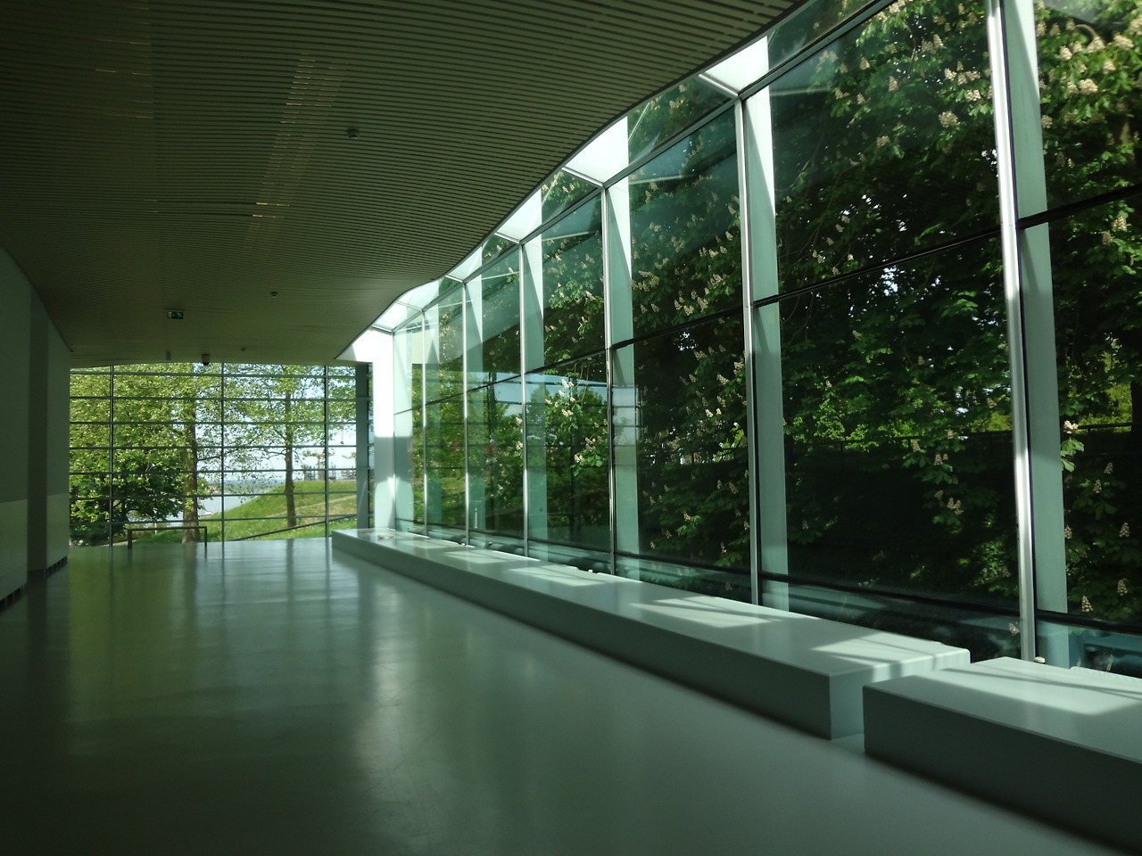 (주 전시실 2층의 모습- 날씨가 좋은 날에는 바깥 풍경이 마치 숲 속 같아 보인다. 창 밖에 펼쳐진 강물은 바다를 보는 느낌마저 갖게 한다)