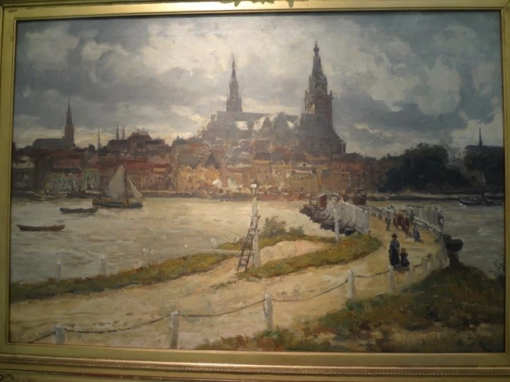 (미술관에서 바라 본 방위탑과 발(wall)강의 모습, 발 강에서 시내 중심부의 성과 교회를 바라본 모습을 그린 풍경화)