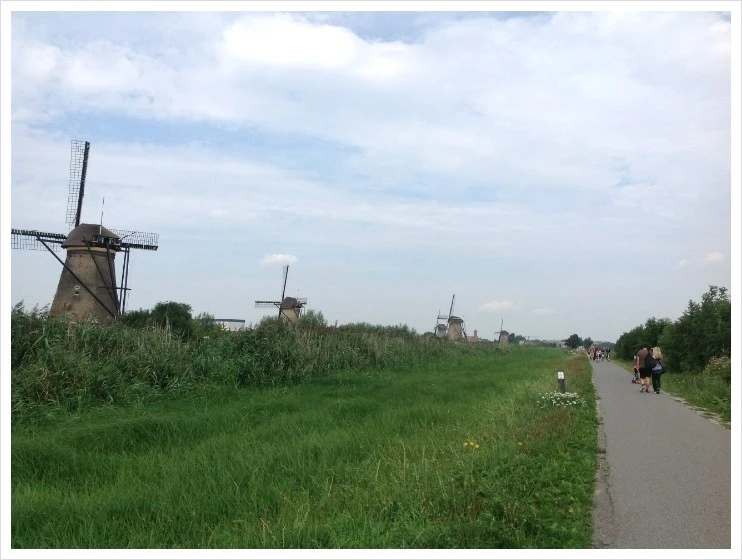 수로를 끼고 있는 길을 따라 자전거로 달리면 18세기에 만들어진 19개의 풍차를 지나치며 볼 수 있다.