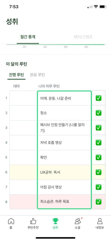 운동을 그 강도에 상관없이 '꾸준히' 해왔다는 건 스스로에게 정말 칭찬해주고 싶어요.