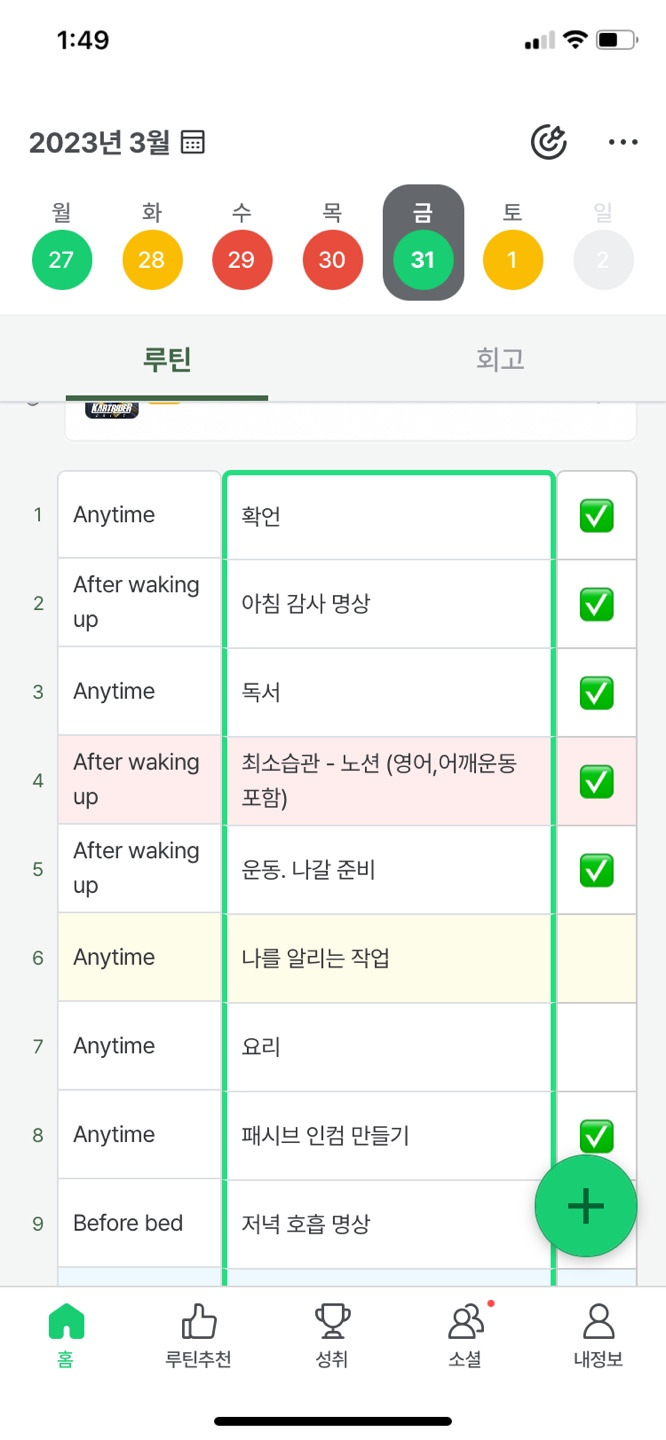 영어공부, 운동 등의 기록들