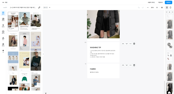 제품의 기본 정보만 입력하면 상세페이지를 만들어주는 디자인 툴이 있기는 하지만 완성도 떨어지는 편.