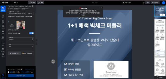 포스터, SNS용 컨텐츠 디자인은 가능한 듯. 하지만 상세페이지를 제작해주는 기능은 없음.