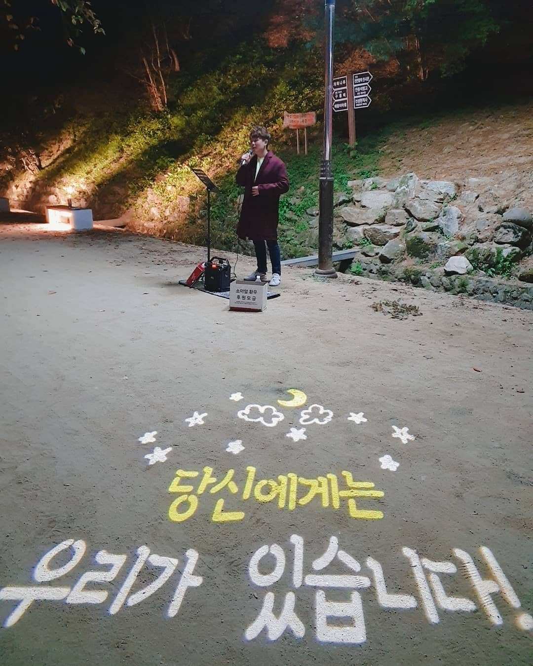 공연 중밖에서 할 수 있는 취미를 찾던 중 문득 버스킹을 하고싶다는 생각이 들었고, 이왕 하는 것 어려운 사람들을 돕기로 결심했다. 그래서 3주 정도 전부터 버스킹을 다니며 소아암 환자들을 위한 후원공연을 하고 있다.