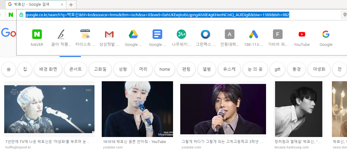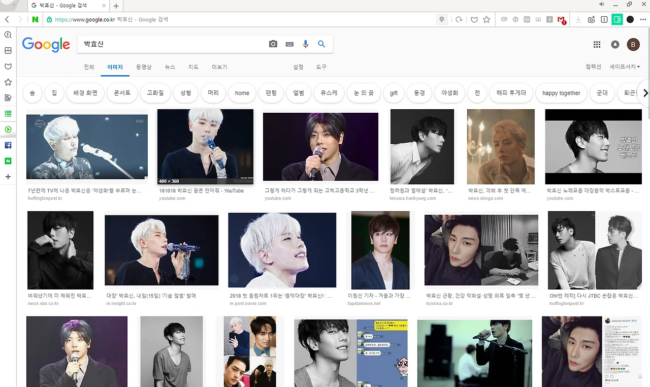 구글에 박효신을 검색한 상태로 이미지 탭을 누르면 박효신과 관련된 이미지가 좌라락 정돈되어 나온다. 하. 정말 잘생겼다. 대장나무 박효신, 얼른 8집 내 주세요!