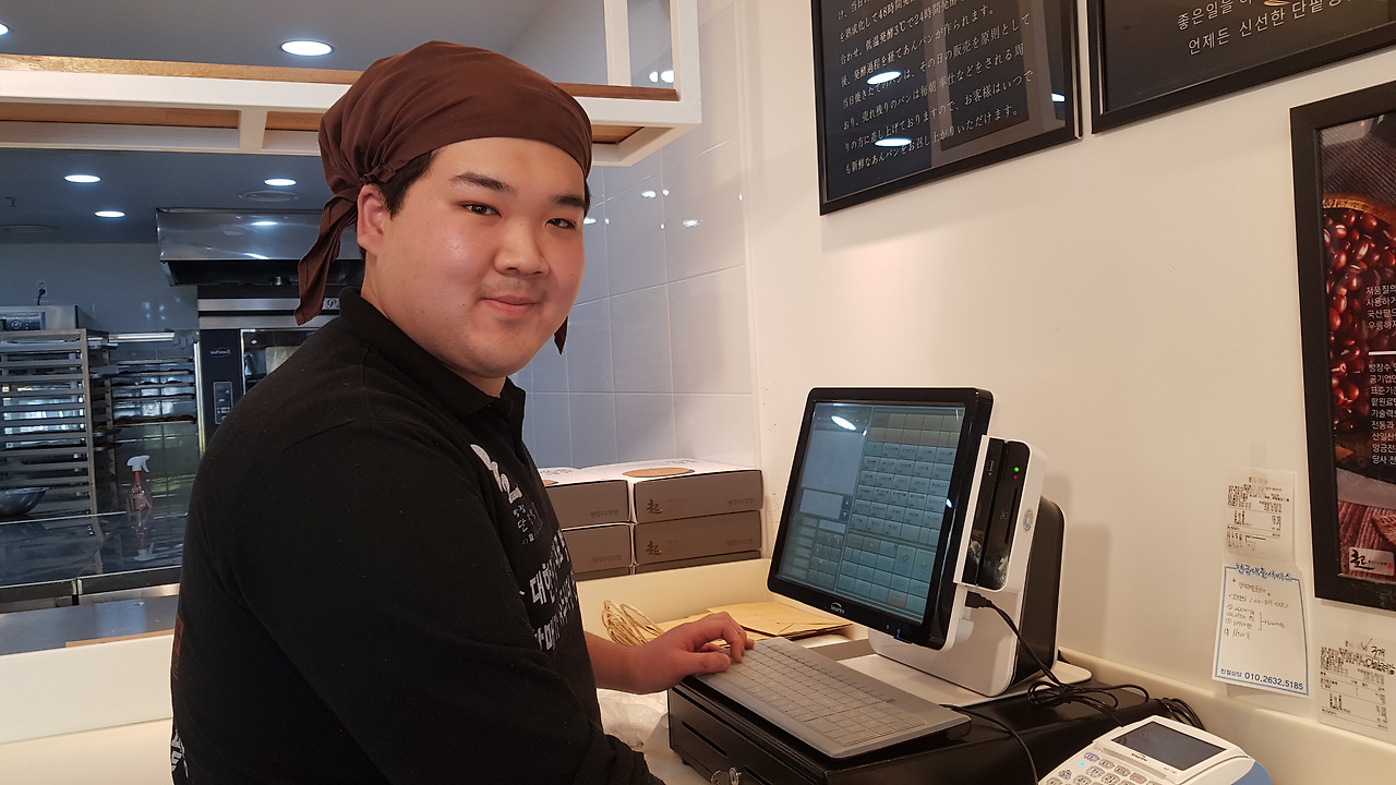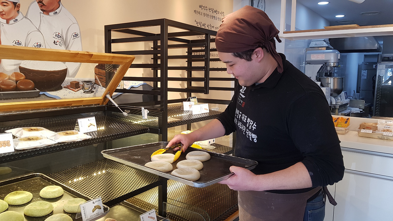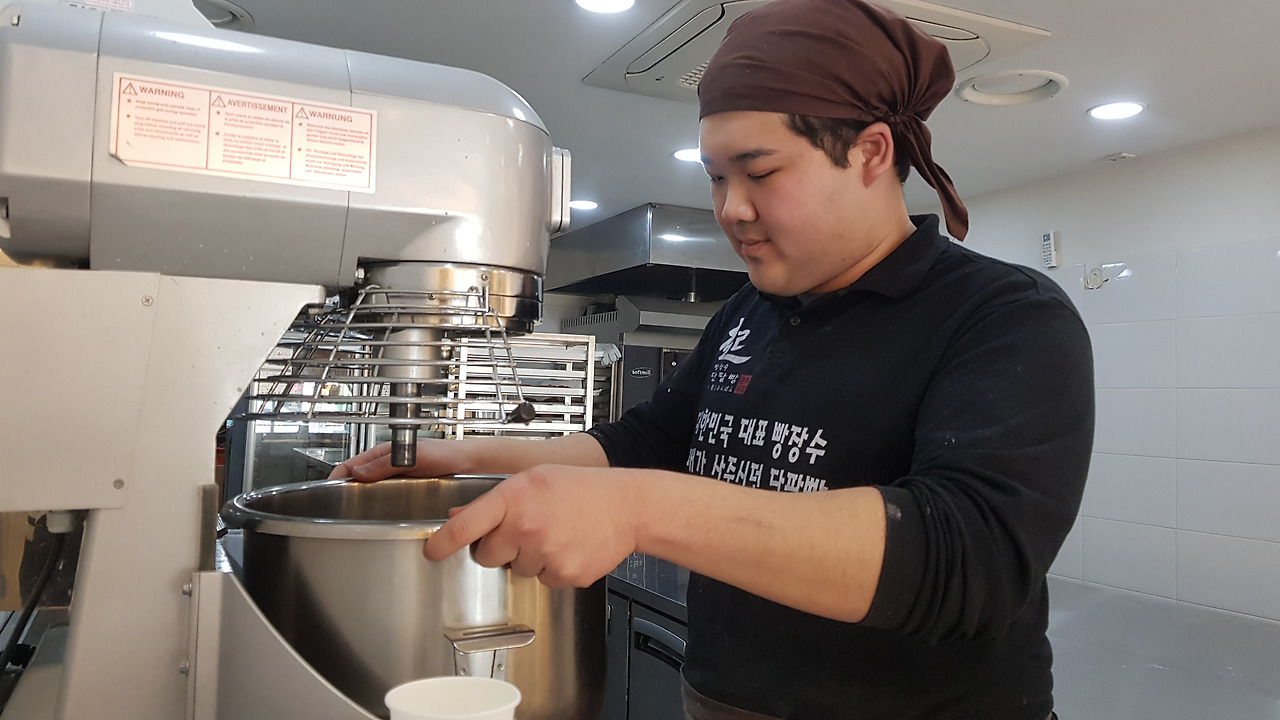 빵을 진열하는 중인 정연욱 님