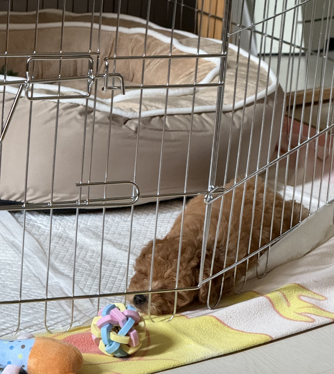 그리고 전날 시켜둔 매트와 안전문이 도착했다. 또다시 율무의 환경이 바뀌었다. 담요를 빼냈고, 바닥에는 미끄럼 방지 매트를 깔았다.