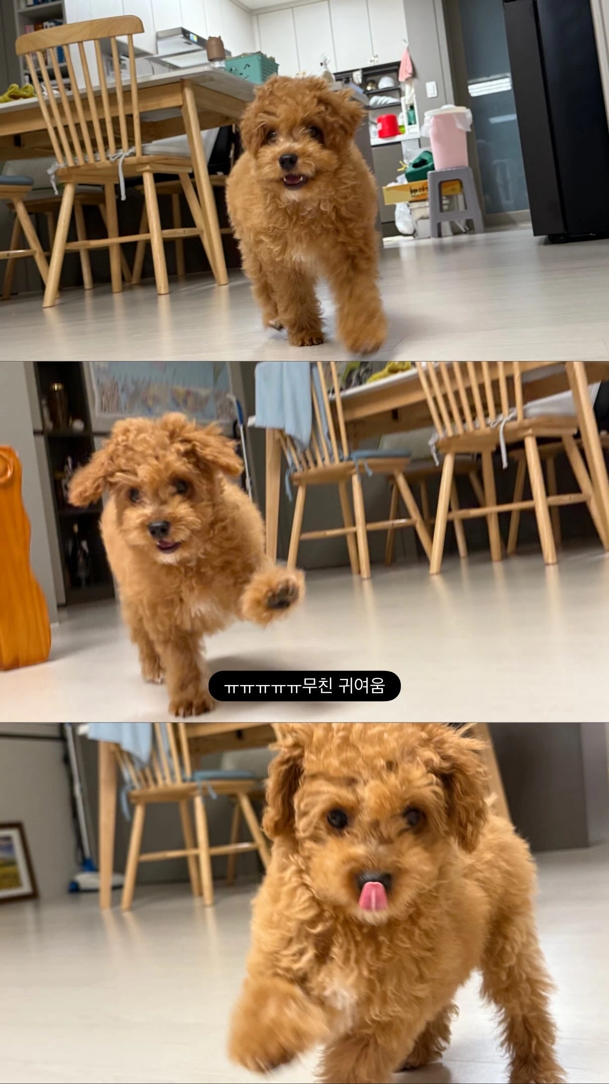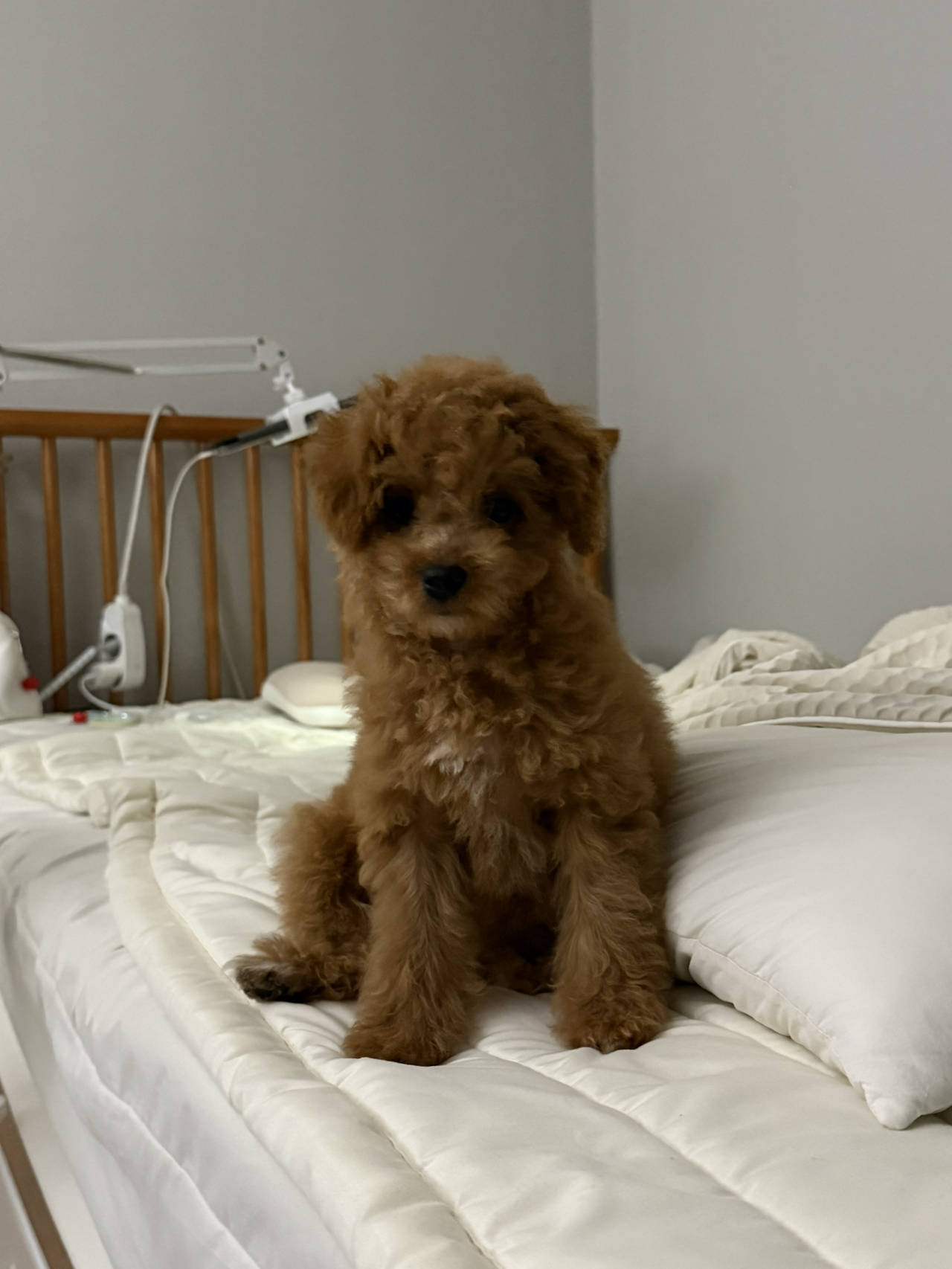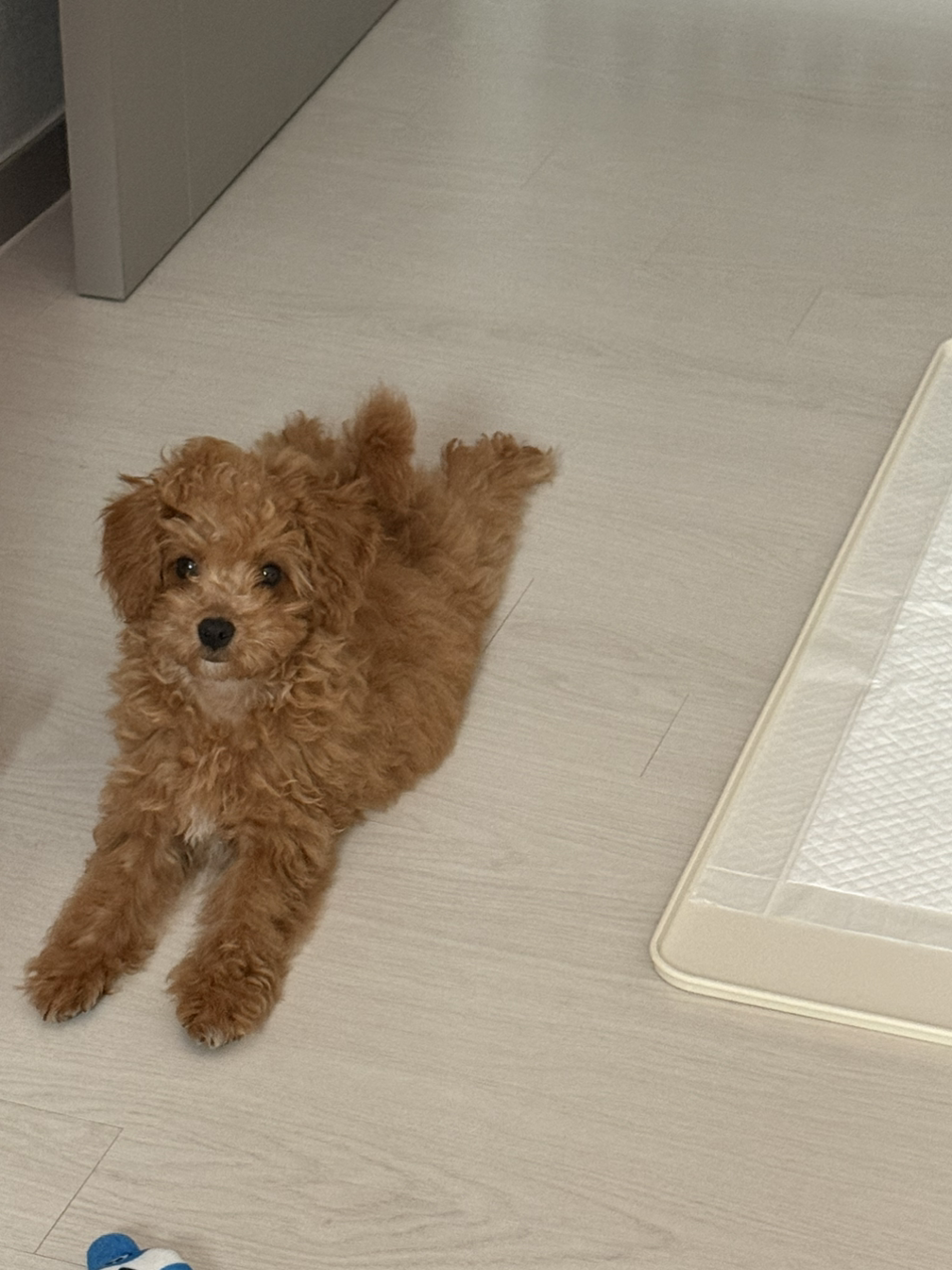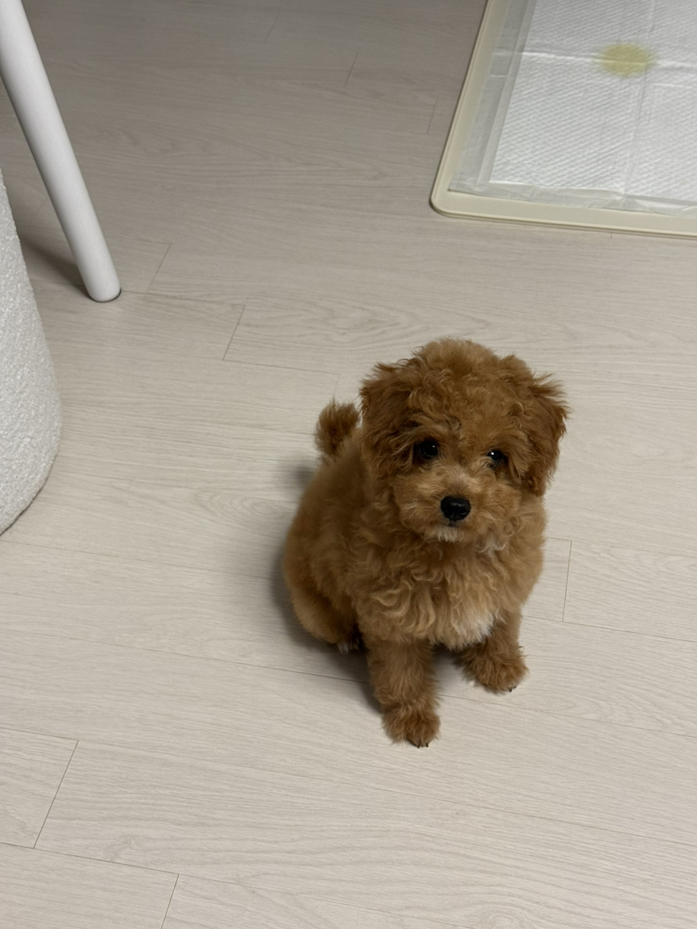 낯설었던 강아지 냄새가 꼬순내로 인식 되고 바뀌는 데는 한 달 정도 걸린 것 같다. 그리고 새벽에 율무와 함께 자기 시작했는데 일어서서 나가려는 행동을 하면 바로 침대에서 내려준다. 그럼 배변 패드로 가서 쉬야나 응가를 한다. 기특한 율무..