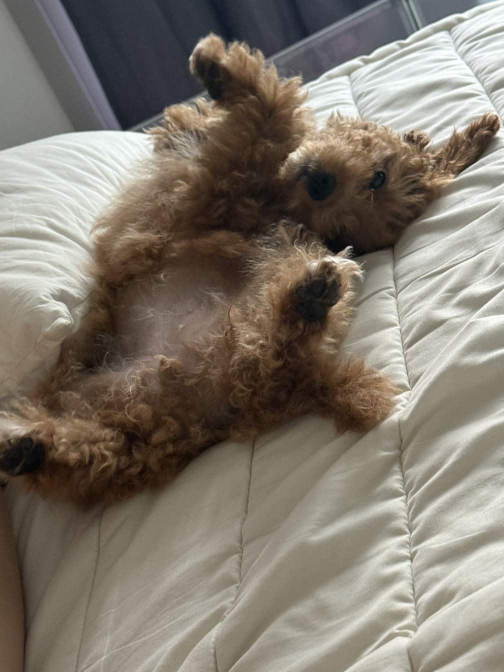 그렇게 하루 이틀, 자다보니 이제 옆에 율무가 없으면 내가 못 자는 상황까지 와버렸다. 따끈한 온기가 너무 좋고, 율무가 핥아 주는 촉감이 좋고, 꼬순내도 좋고, 다 좋다. 율무를 데려오고 나서 많은 것들이 바뀌었고 신기하다. 나를 위해서 돈을 쓸 줄만 알았던 나는 이제 율무 장난감, 율무 옷, 율무 용품만 보기 시작했다.