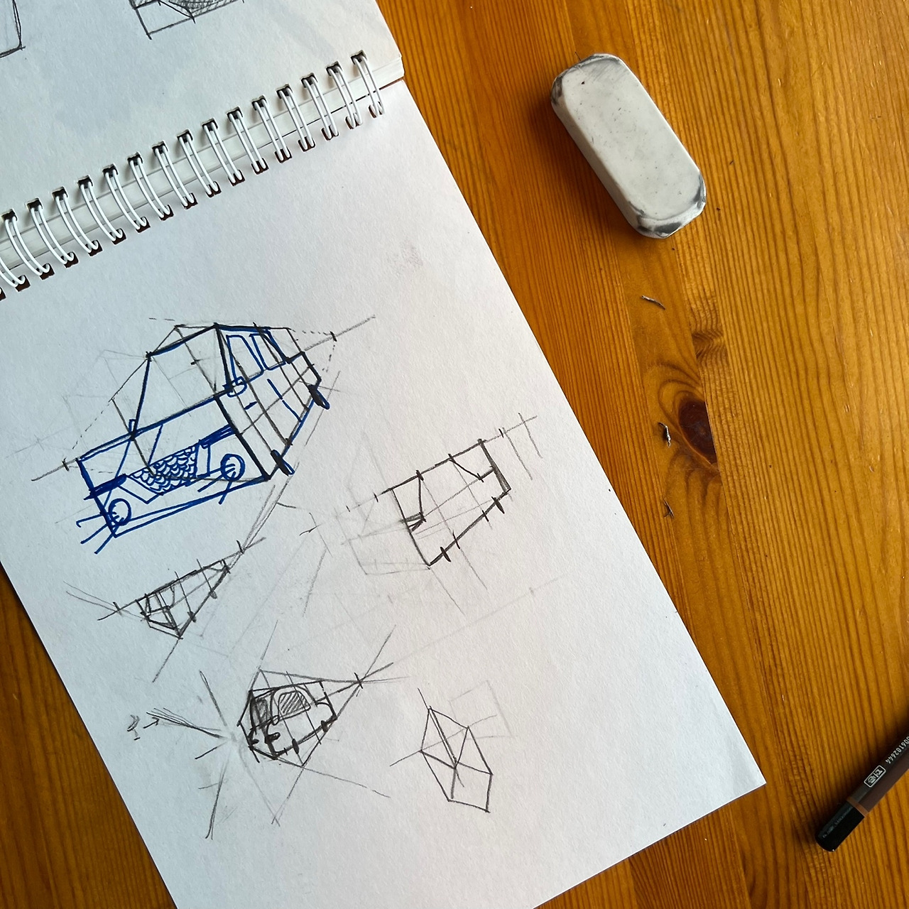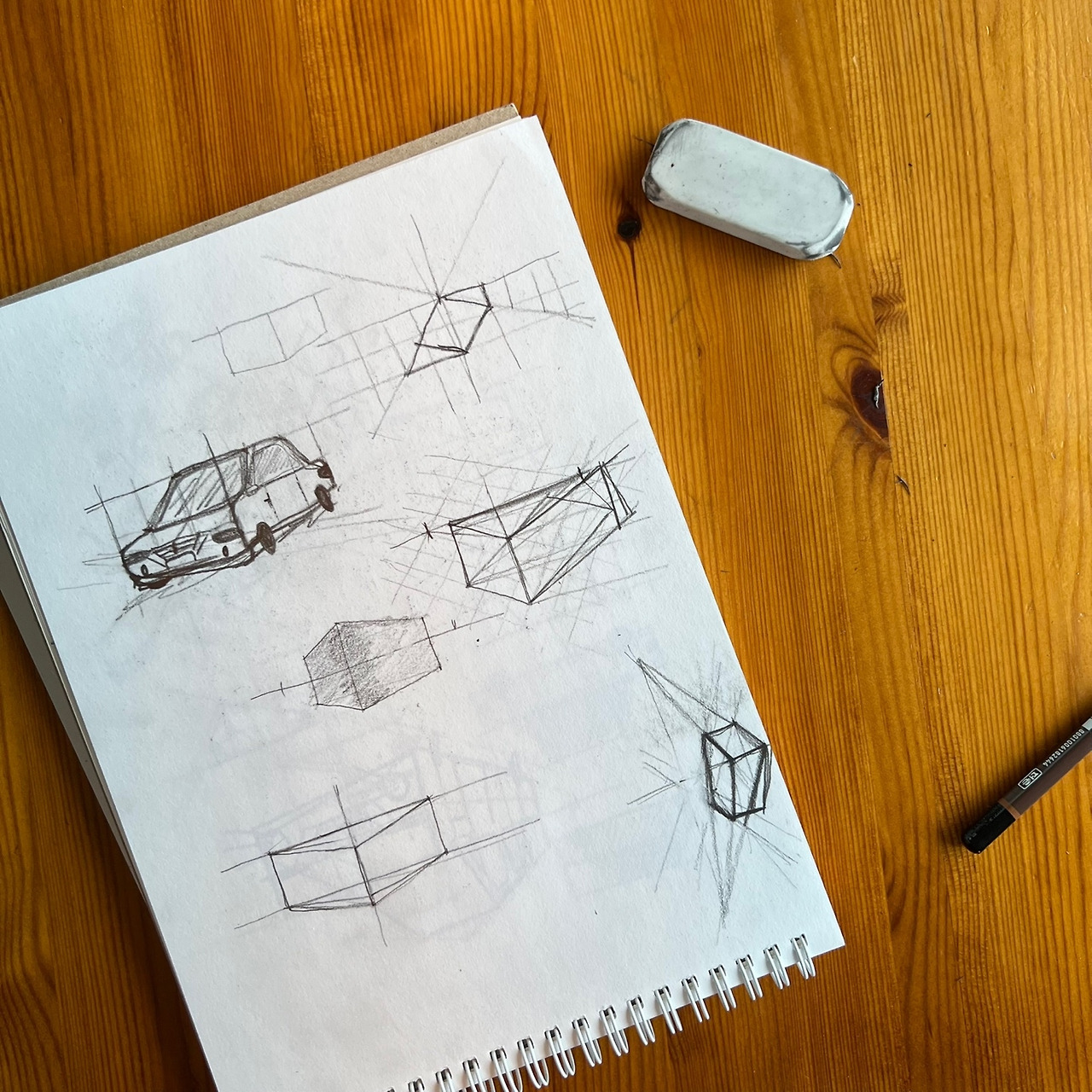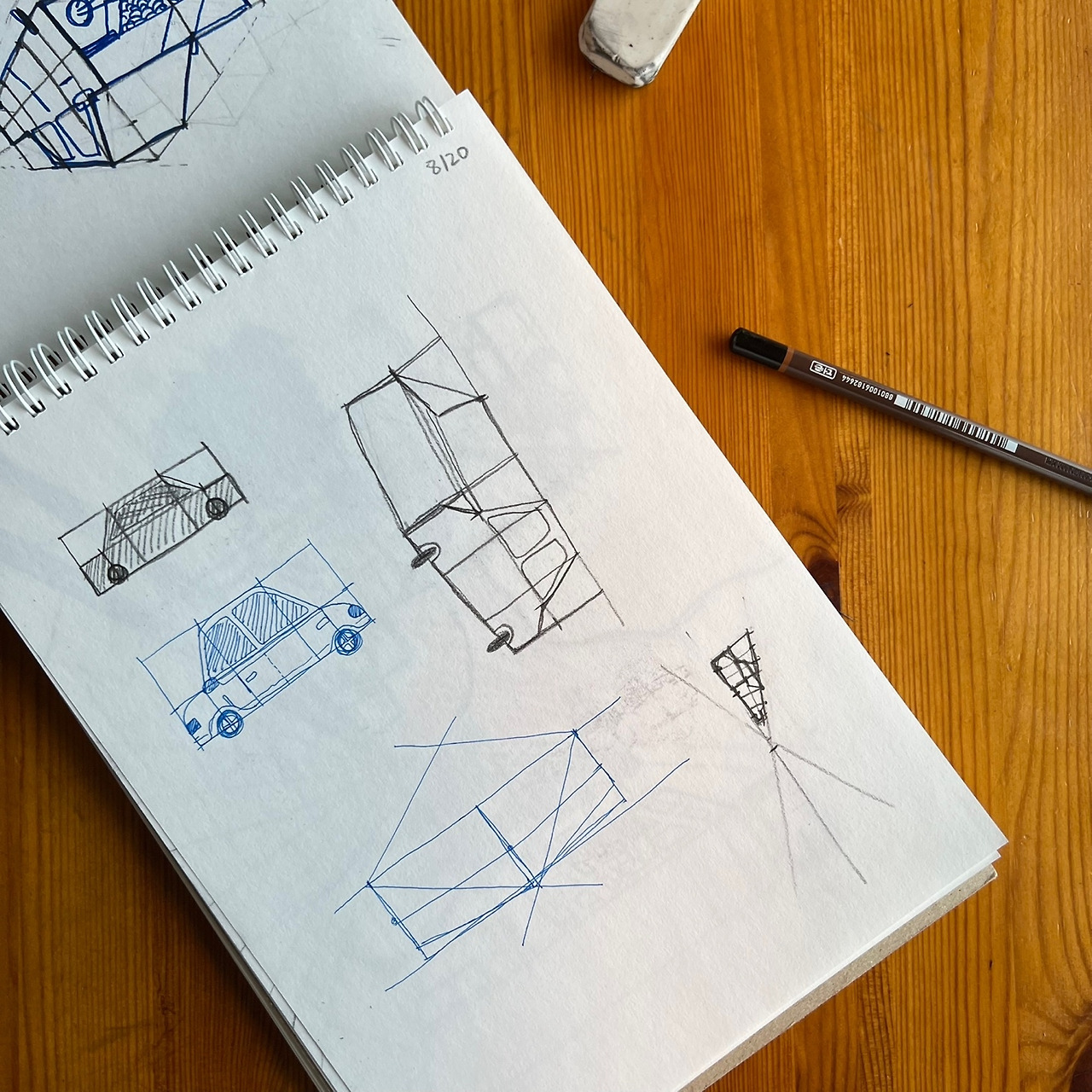 먼저 투시 형태의 박스를 그리고 사각형 안에