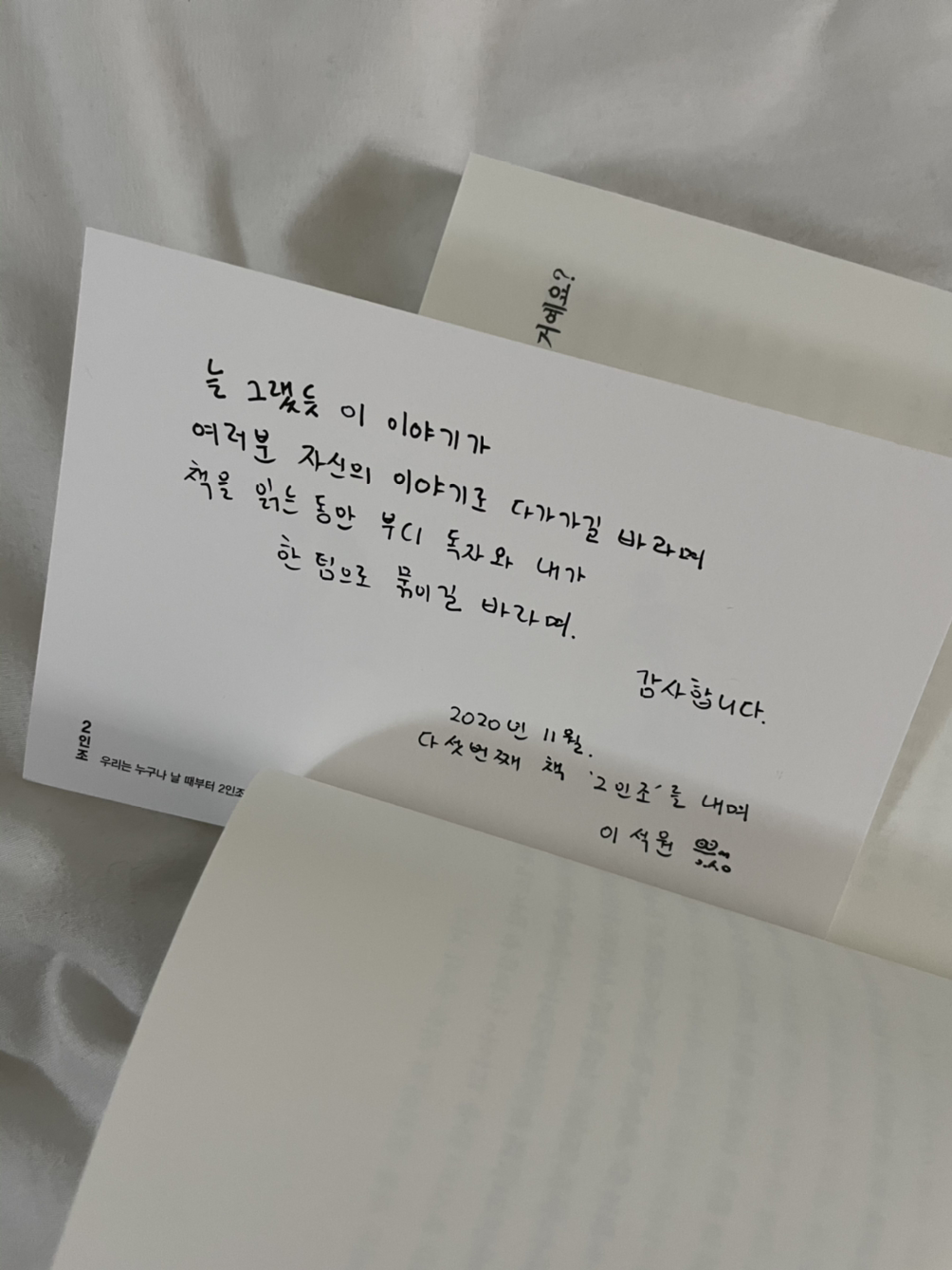(요즘 같은 언텍트 시대에는 책이나 에세이를 읽는 것도 큰 파이팅이 된다. 이석원의 <2인조>가 참 좋더라.)