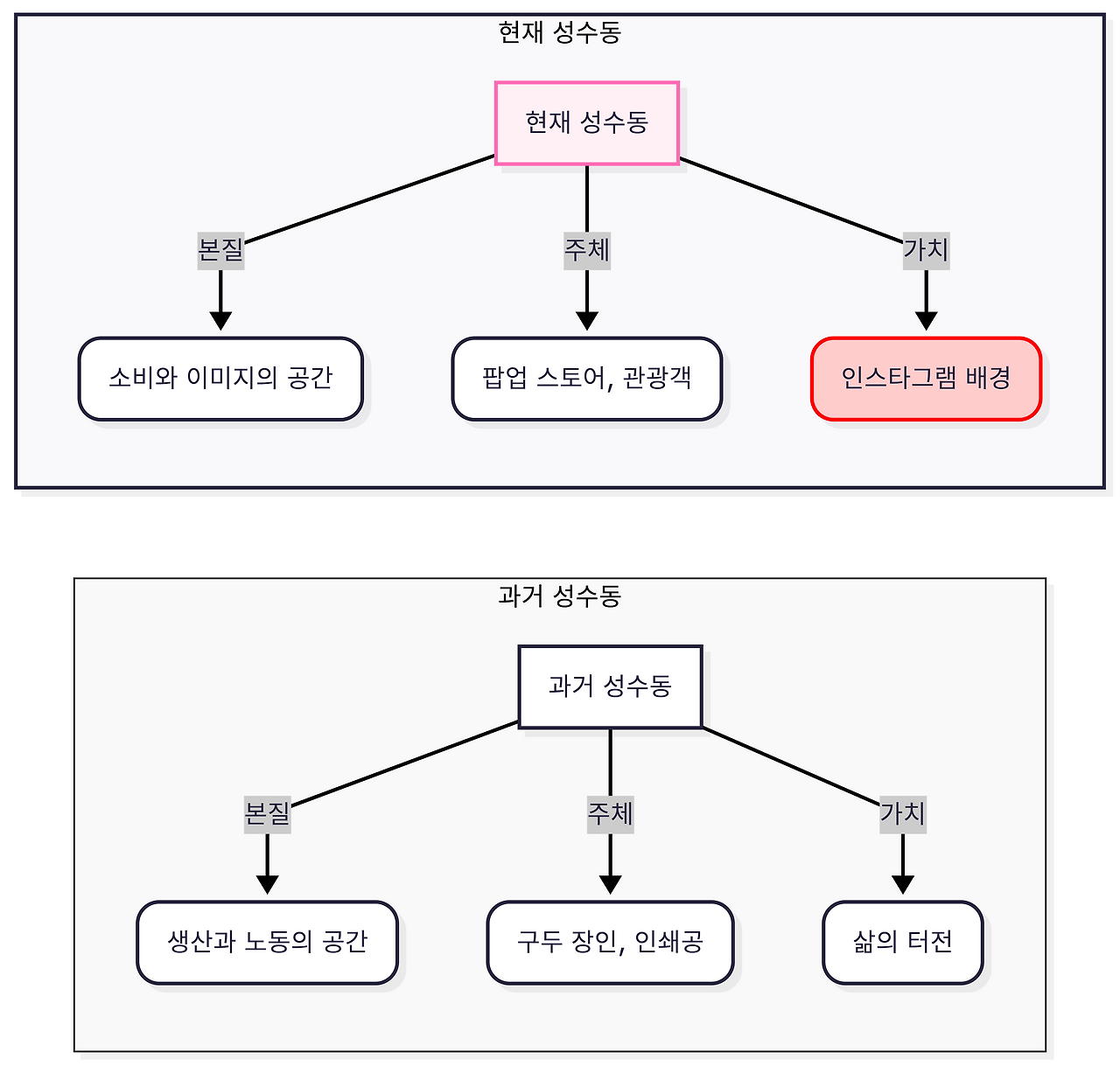 반면 성수동은 관이 "이곳이 한국의 브루클린"이라고 규정하고 판을 깐 '조화'라 할 수 있다.