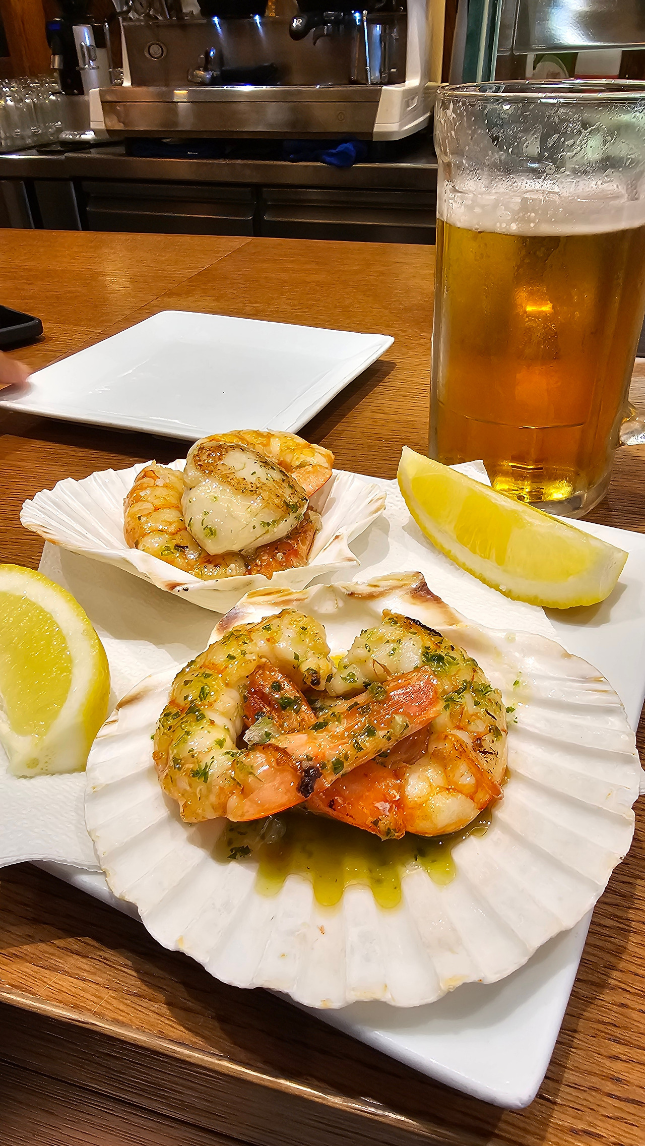 큰 일을 끝냈는데 조금 더 기분을 즐기고 싶어서 타파스 바에 가서 새우 타파스와 큰 생맥주 한잔을 먹었다. 그동안 알베르게에 도착해서 먹는 맥주도 맛있었지만 모든 걸 끝내고 마시는 맥주는 다른 차원이다.