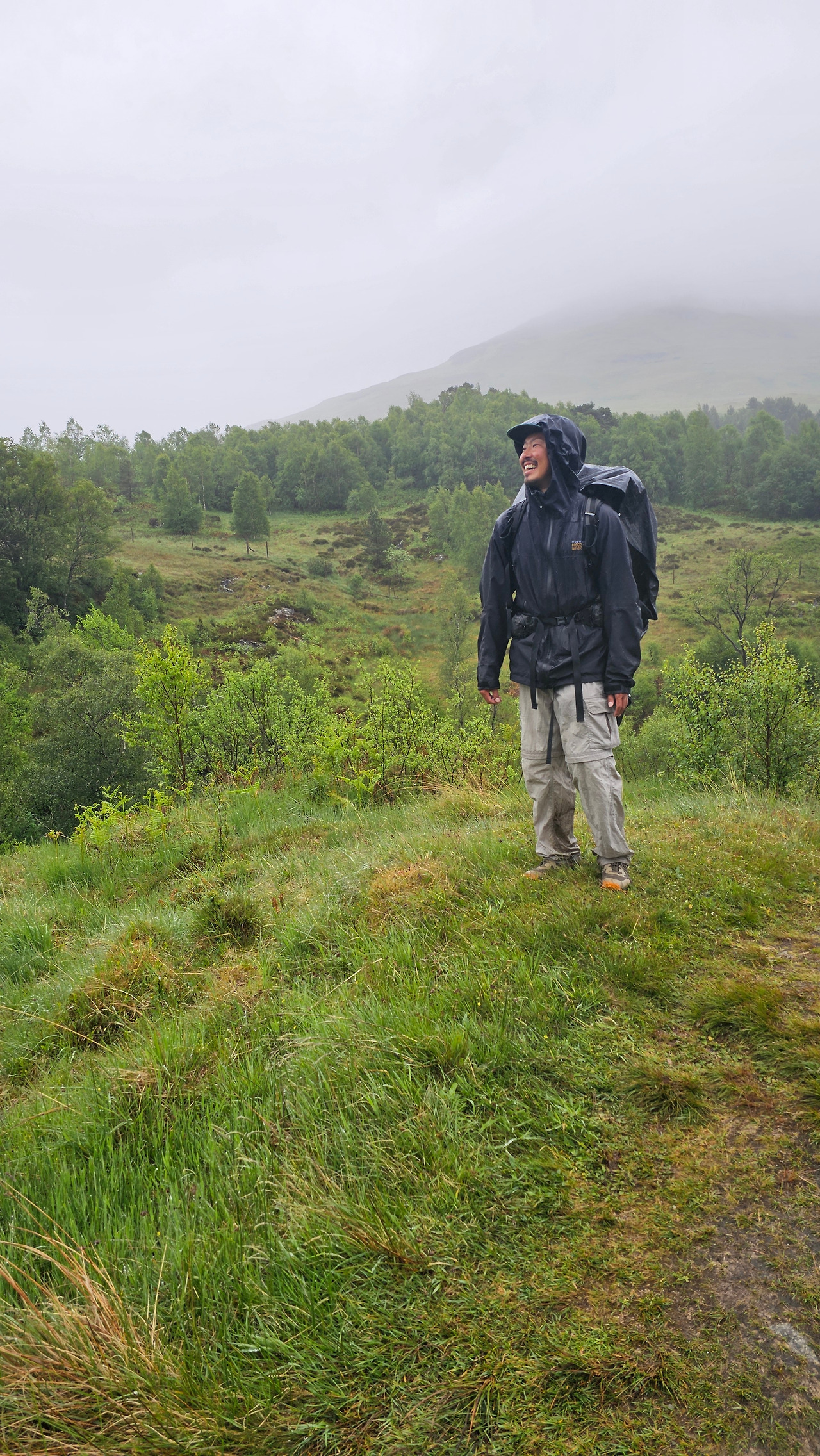 다만 어제와 다른 점은 중간에 바가 하나도 없다. 아침부터 커피 말고는 입으로 들어간 것이 없다. 이상하게 물을 안 마셔도 목이 안 마르고 걸어도 배가 안 고프다. 이제 여기를 걷는 것에 완벽히 적응했나 보다. 오늘도 산길을 걸어서 오르락내리락 했지만 길이 훨씬 넓어서 걷기 좋다. 챗gpt는 로흐 로먼드 (Loch Lomond) 호수를 걸으며 아름다운 풍경을 볼 수 있는 코스라고 했지만 비가 심하게 내려 뿌옇고 바람이 새차게 불어 호수가 파도치는 것 밖에 안보인다. 오늘도 상상할 수 밖에 없다. 저 파아란 호수 위로 햇살이 비추면 반짝반짝 빛나겠지. 적어도 오늘은 그럴 일이 없다. 네시간쯤 걸으니 이제 호수도 끝나고 본격적인 고원길이 시작된다. 그리고 드디어 해가 조금 보인다. 그러다 이내 다시 구름으로 하늘이 덮이고 비가 내렸다가 또 갰다가를 반복한다.