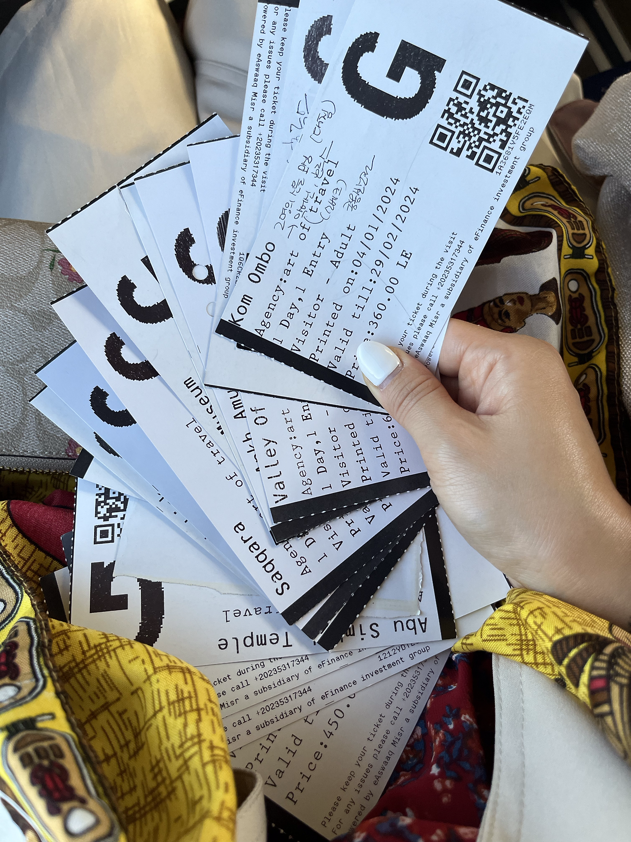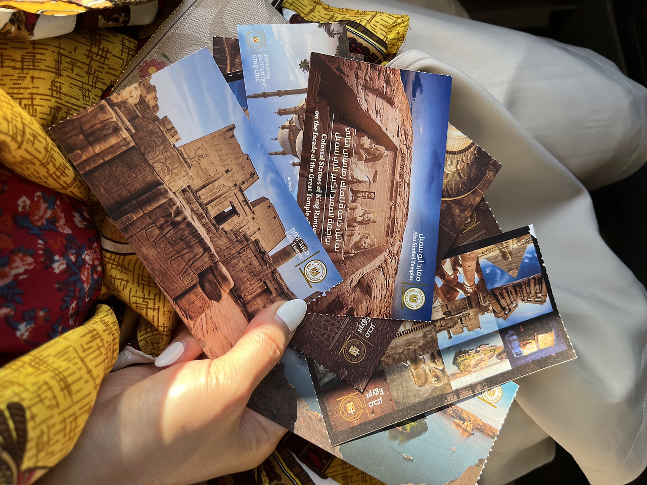 카이로박물관부터 이집트 여행시 관람을 위해 입장했던 곳들의 티켓을 모았다. 이렇게 티켓 뒤에는 신전, 피라미드, 박물관등의 그림이 그려져있고 뒤쪽에는 간단한 이름과 설명, 입장 비용이 기재되어있다.