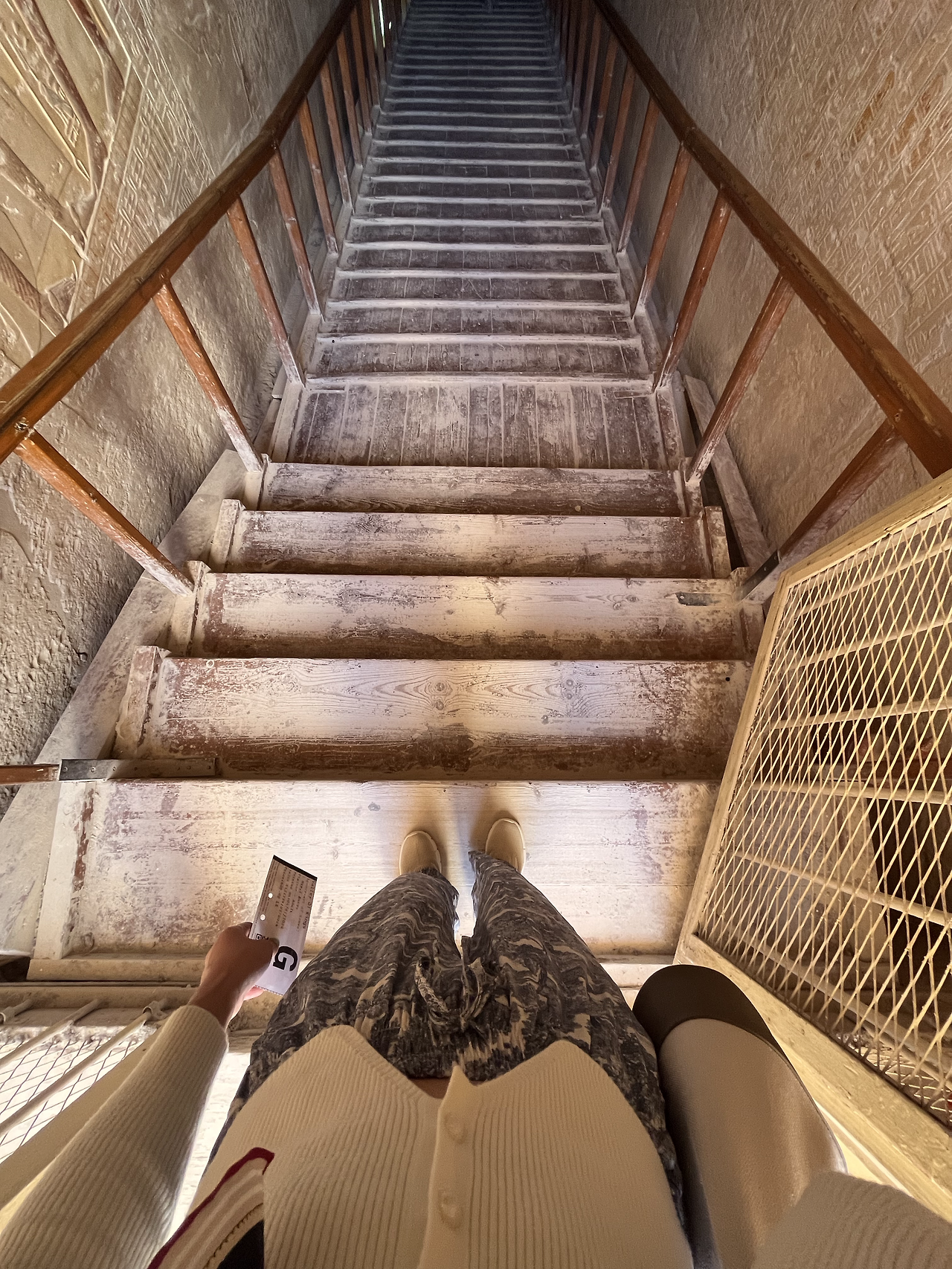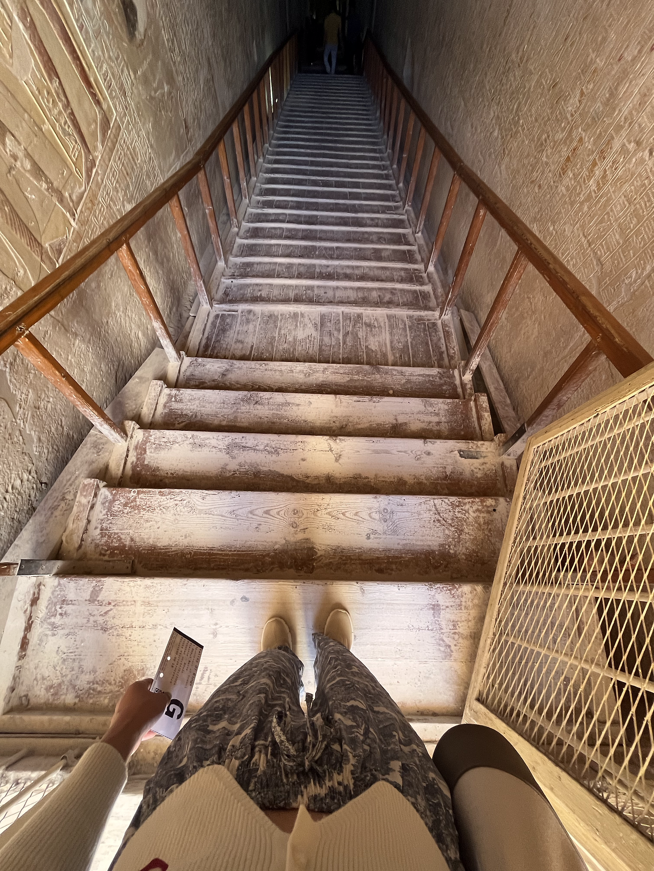 투탕카문 무덤은 내려가는 계단 자체도 너무 가파르고 미끄러워서 손잡이를 잘 붙들고 내려가야했다. 그리고 여기서 느꼈다. 피라미드 안에 들어가기 위한 예행연습이다, 이건 1/10정도 밖에 되지 않는 계단이다. 마인드컨트롤을 외치며 내부로 들어갔다. 사진 촬영이 금지된 곳은 아니었는데 관광객의 혼잡을 최소화하기 위해 각각 무덤 안에 관리자분이 항시 대기를 하고 계시고 조심스럽게 촬영을 하고 관람 후에 바깥으로 나왔다.