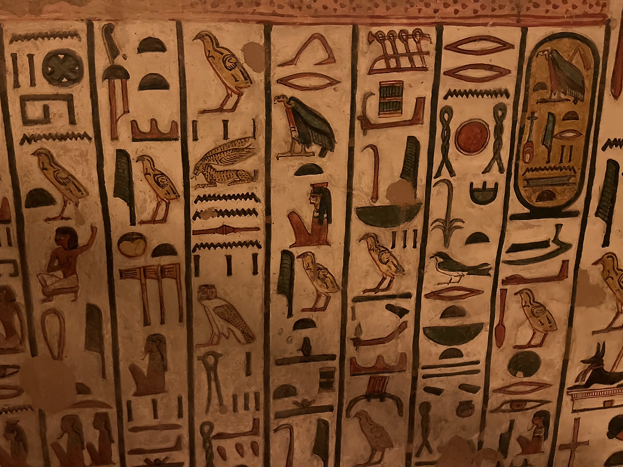 영원한 생명을 상징하는 풍요의 열쇠, 앙크부터 시작해서 고대 상형문자와 고대 이집트의 여러 신들의 모습이 새겨져있는 벽화를 보면 이 오랜 시간 훼손되지 않고 색과 형태가 잘 보존되어 있는 것이 신기하고 놀라울 따름이다. 그 옛날 도대체 어떤 기술로 이렇게 만들어냈을까를 생각하다 관뒀다. 내 머리로 생각할 수 있는 것이 아닐테다. ‘네프티스’ 그리고 ‘이시스’가 그려진 벽화를 둘러보다 아누비스와 호루스가 그려진 곳에서 한참을 서있기도 했다. 그래봐야 이 모든게 10분 이내였다. 참고로 이시스는 모성, 마술, 생산 등을 다스리는 신이며 네프티스는 죽음과 비탄을 의미하는 신으로 알려져있는데 이집트 고대 신 얘기를 하자면 끝도 없으니 이만 해야겠다.