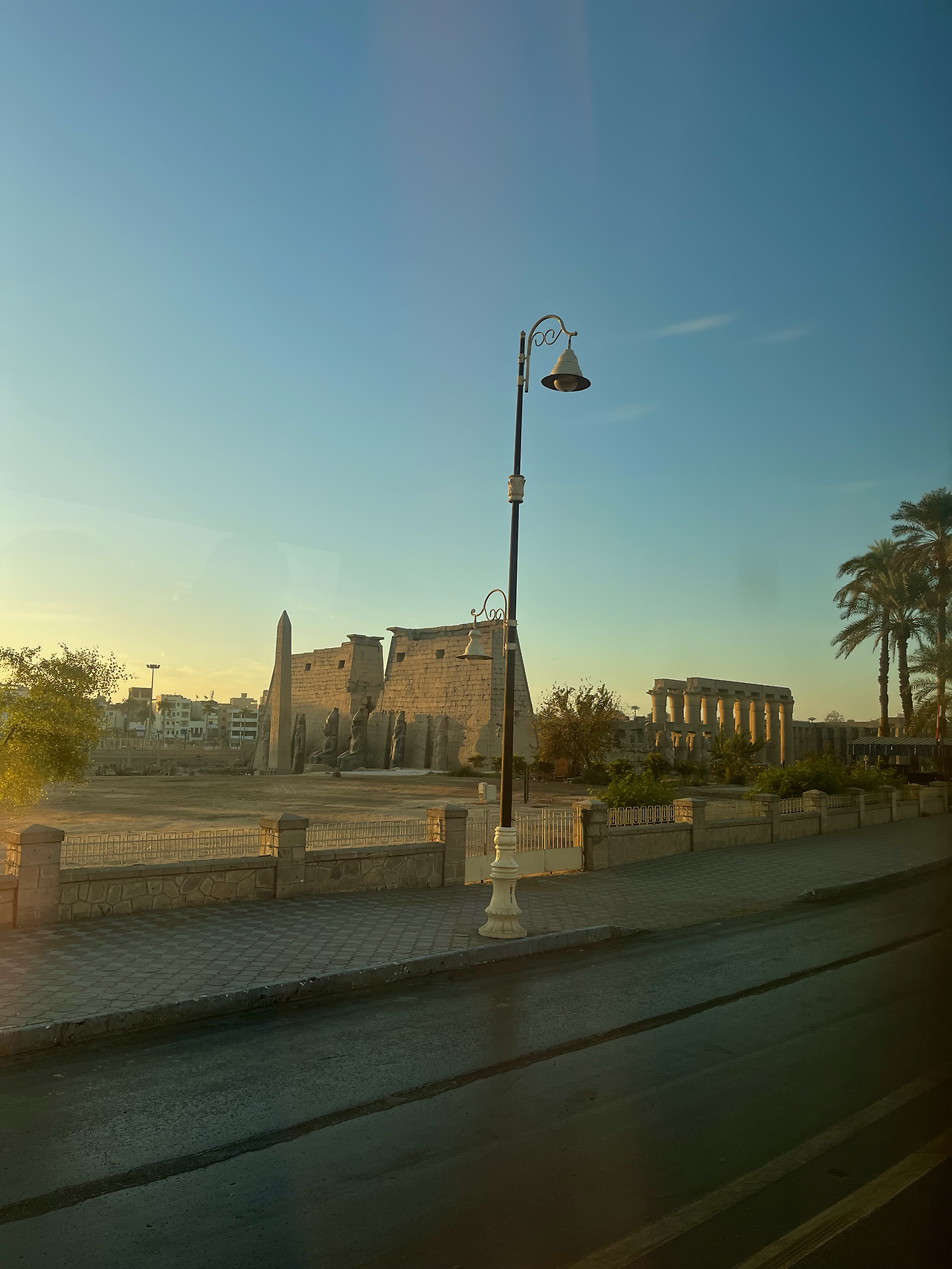 다음 일정은 휴식을 위한 후르가다의 여정이었다. 3일간의 나일 크루즈 여행동안 아스완, 룩소르를 거치며 많은 신전과 박물관을 관람했고 살면서 다시 또 볼수 있을까 싶은 자연의 위대한 풍경들을 감상했다. 떠나기 전 버스 안에서 바라본 어젯밤 조명을 받아 반짝거리던 룩소르 신전.