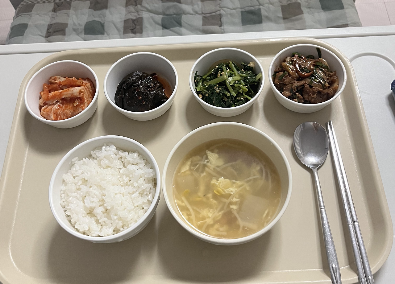 나는 병원에서 아침, 점심, 저녁 식사가 꼬박 꼬박 제 시간에 맞춰 나오는 것부터 감격스러웠고 반찬 뚜껑을 열고 메뉴를 확인할 때면 학교 다닐때 식단표도 확인하지 않던 내가 다음 메뉴는 뭐가 나올지 기대감에 부풀어올랐다.