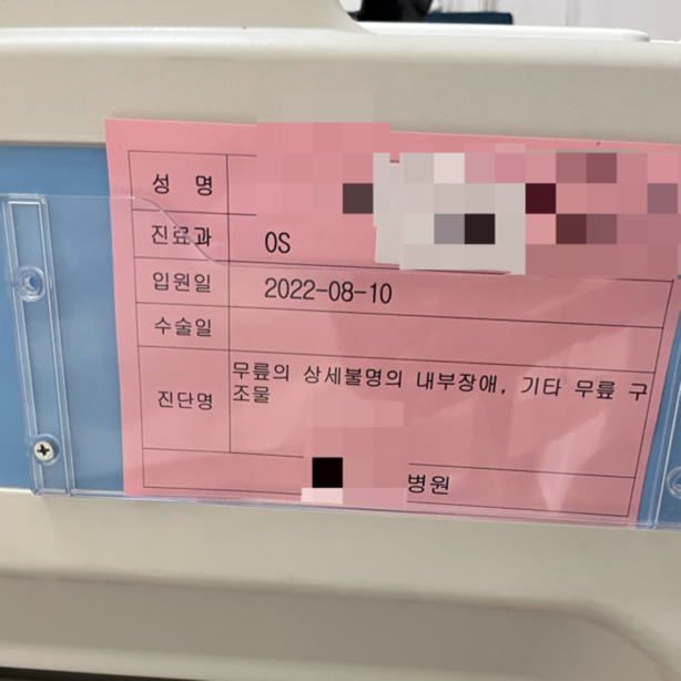 양쪽 무릎 MR과 CT를 포함해 온갖 검사가 이루어졌다. 피검사는 물론이었다. 그래도 나이가 있는데... 큰 병은 아니겠지. 기껏해야 근육통이 심했거나 일시적인 무릎 통증일거야. 그런데 이렇게 아프다고? 아니야. 그래도 별일 없을거야. 나를 다독이며 기분나쁜 상상을 지워버리기 위해 애쓰던 때, 주치의 회진시간이 되었다. 원장님은 나를 외래로 부르셨다. 그리고 들은 MR결과는 생각보다 문제가 꽤 많았다.
