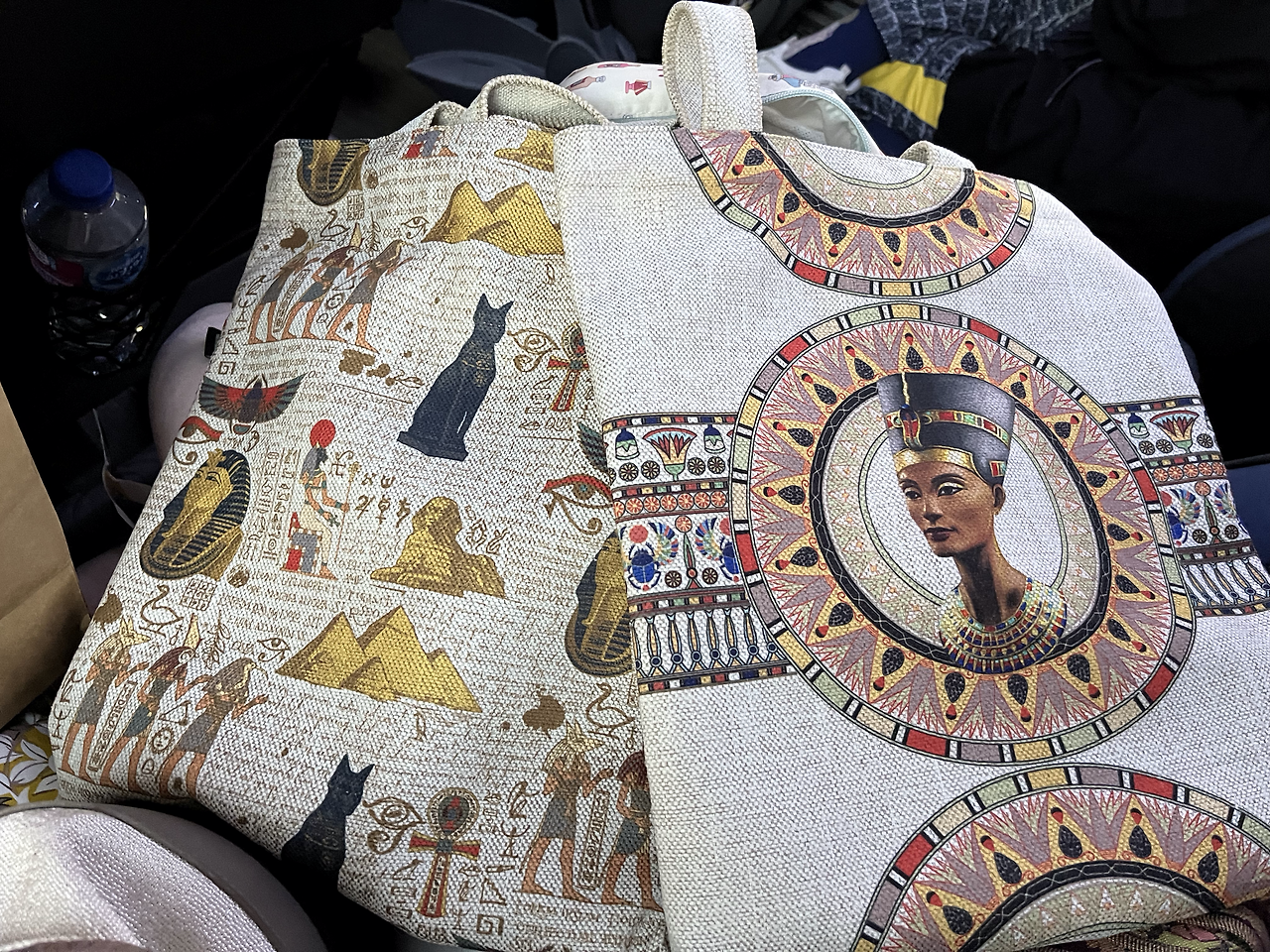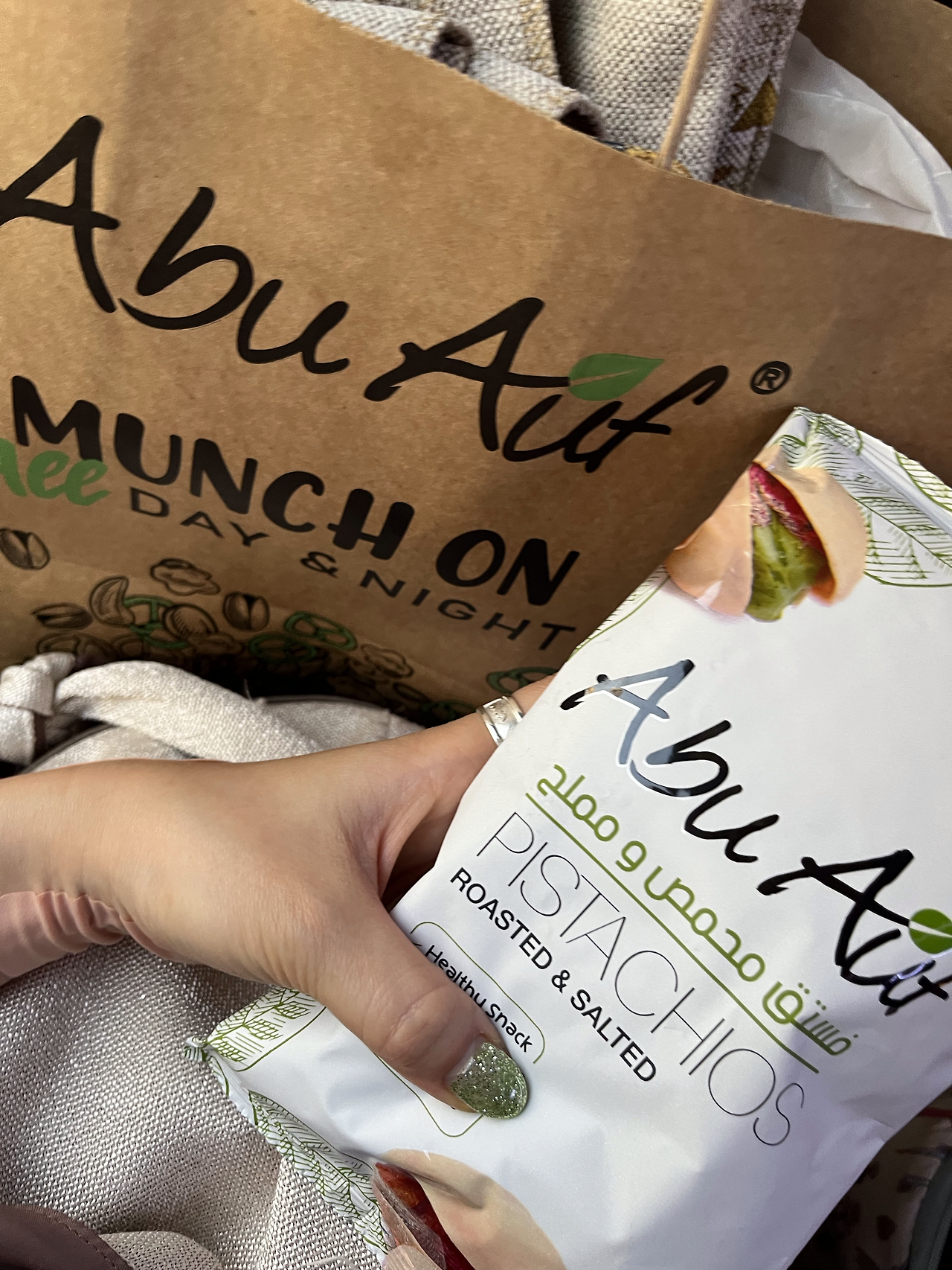 사람들이 많이 사간다는 대추야자 초콜릿을 제일 먼저 구매했다.(선입견이 있었어서 별로일거라 생각했지만 아니었다. 굉장히 특별한 생김새였고 독특한데도 맛있었다! 주위에 많이 가지고와 지인에게 선물했는데 받은 분들이 좋아하셨다.) 그리고 구매한 피스타치오, 이집트 상징의 그림들이 그려진 에코백(두 개를 구매했는데 이건 너무 아쉽다. 한국에서 구하기도 쉽지 않은데 몇 개 더 사서 선물할걸! 하나는 나, 하나는 엄마가 들고다닌다.)