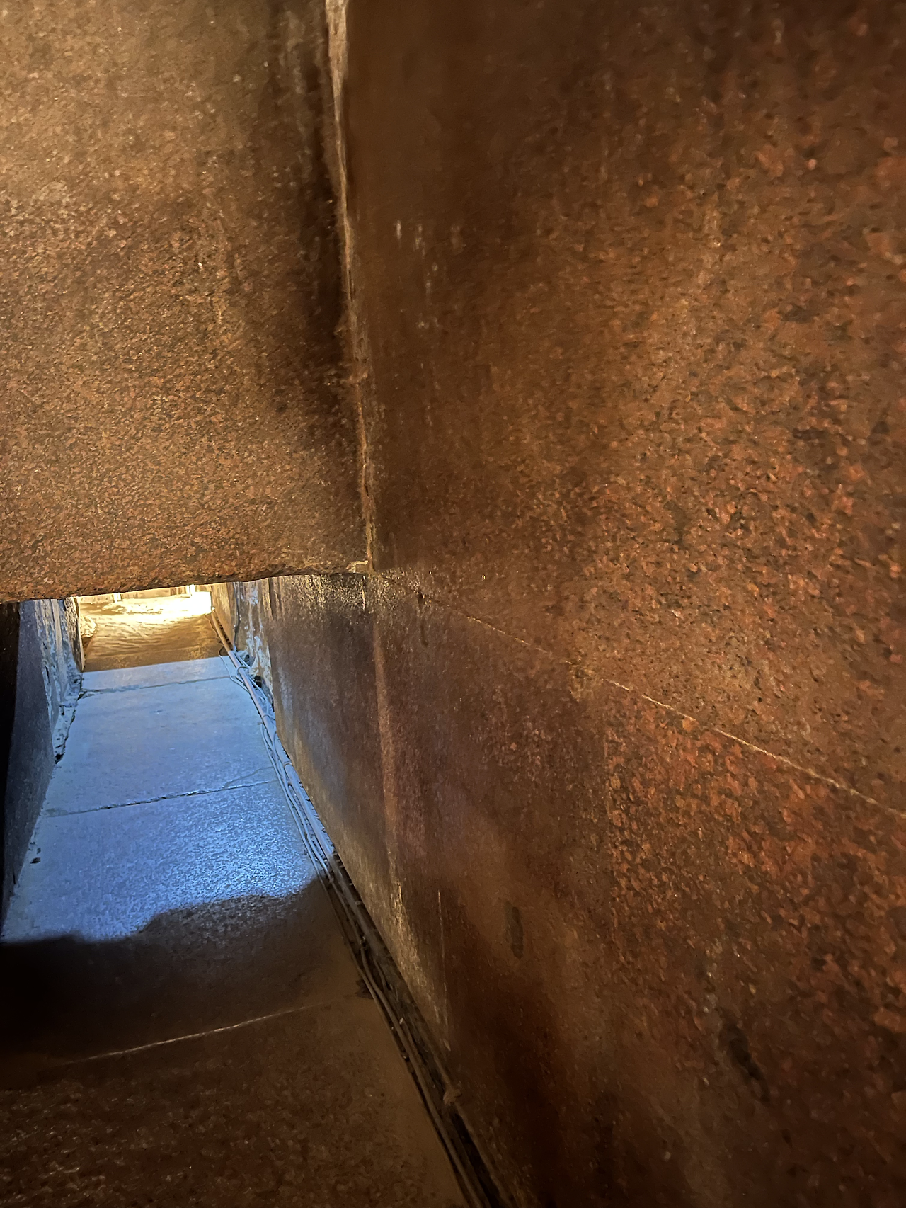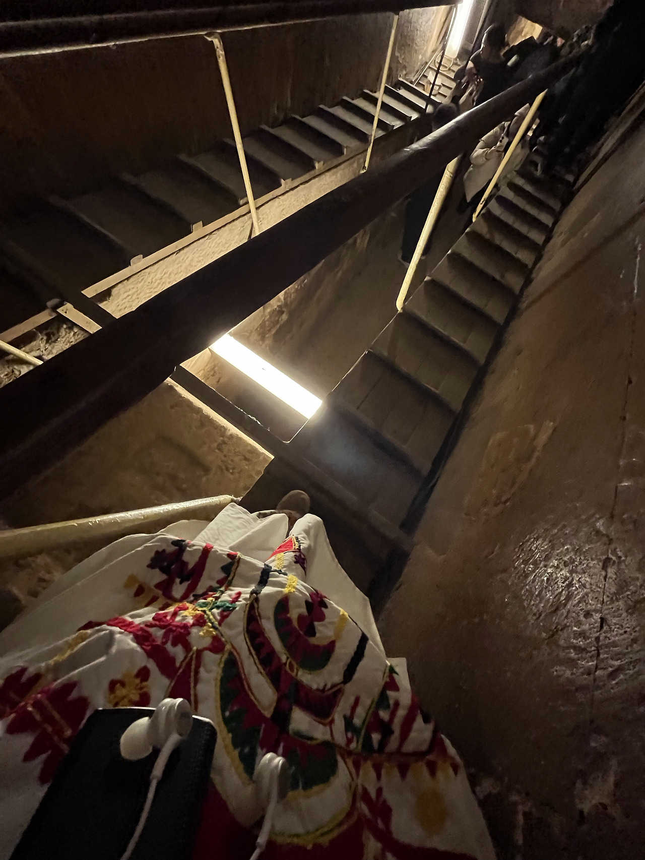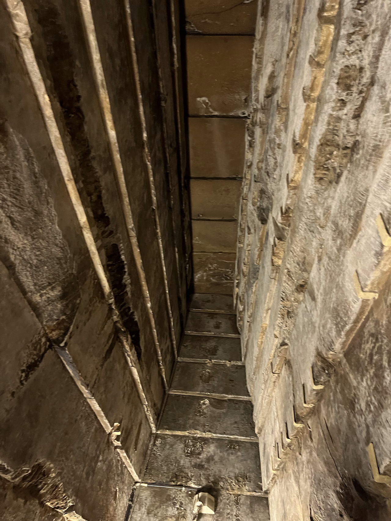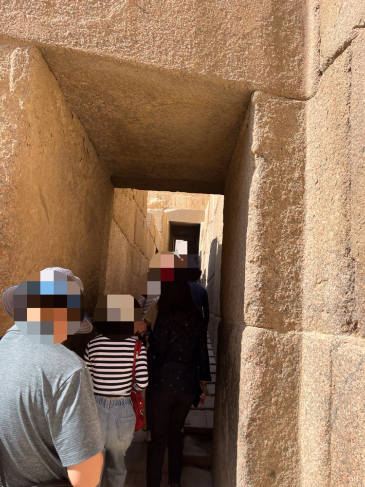 아마도 추측하건대 키 180이상의 남성분들은 입장이 쉽지 않을 것 같다는 생각이다. 허리를 굉장히 많이 숙여야하고 특히나 길도 좁은데다가 계단 폭도 좁아서 발이 큰 사람들도 드나들기에 힘들지 않을까 생각했었다. 실제로 나도 목디스크가 있는 환자이기때문에 내부 입장을 잠시 고민했던 때도 있었지만 결과적으로 나는 이 쿠푸 피라미드 내부 입장을 했던 것이 이집트 여행 중 잘한 일이라고 생각한다. 언제 여길 들어가보겠나.