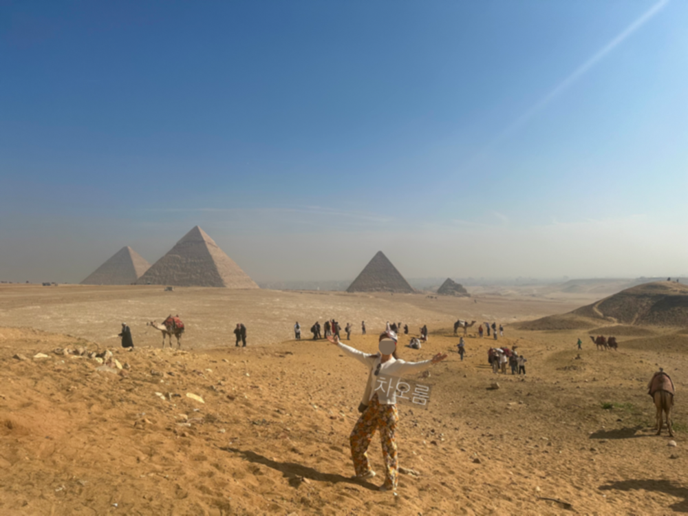 그동안 살면서 많은 힘든일들을 겪었던 건 오늘 내가 이렇게 행운을 쥐려고 잠시 시련의 시간을 겪었던건 아닐까? 나는 1달러로 열장이 넘는 정성 가득한 사진, 소위 말하는 피라미드와 함께 인생샷을 건졌다. 사실 피라미드를 눈앞에서 본것만으로도 행운이었다. 그런데 내 카메라와 두눈에 쿠푸피라미드와 함께 내 모습까지 남길 수 있다니. 그 자체만으로 인생샷이었다.