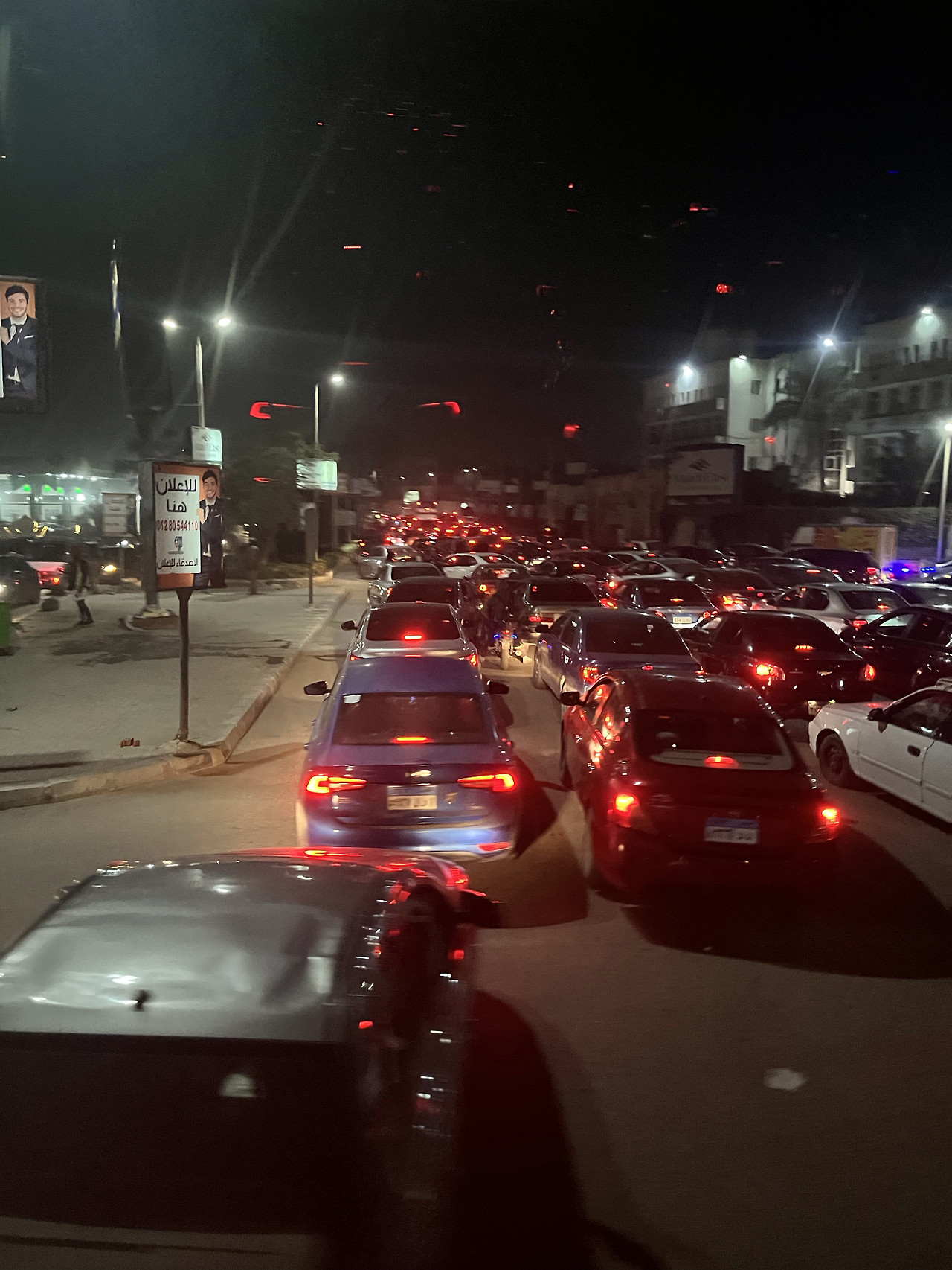 잠시 눈을 감았다가 떴을 때는 호텔에 도착하기 전, 카이로 시내의 한 골목이었다. 저녁 식사를 위해 이동중이었는데 버스 창문 밖으로 보이는 광경들은 이제는 익숙한 모습이었다. 첫날 이집트에 도착하고 카이로에 왔을 때 놀랐던 것은 신호등을 찾아볼 수 없었다는 것과 함께 사람들이 아무렇지도 않게 도로를 왕복으로 걸어다닌다는 부분이었다. 차도 예외는 없었다. 다닥다닥 붙어 가는 수많은 자동차들. 마치 놀이공원에서 타던 범퍼카같았다.
